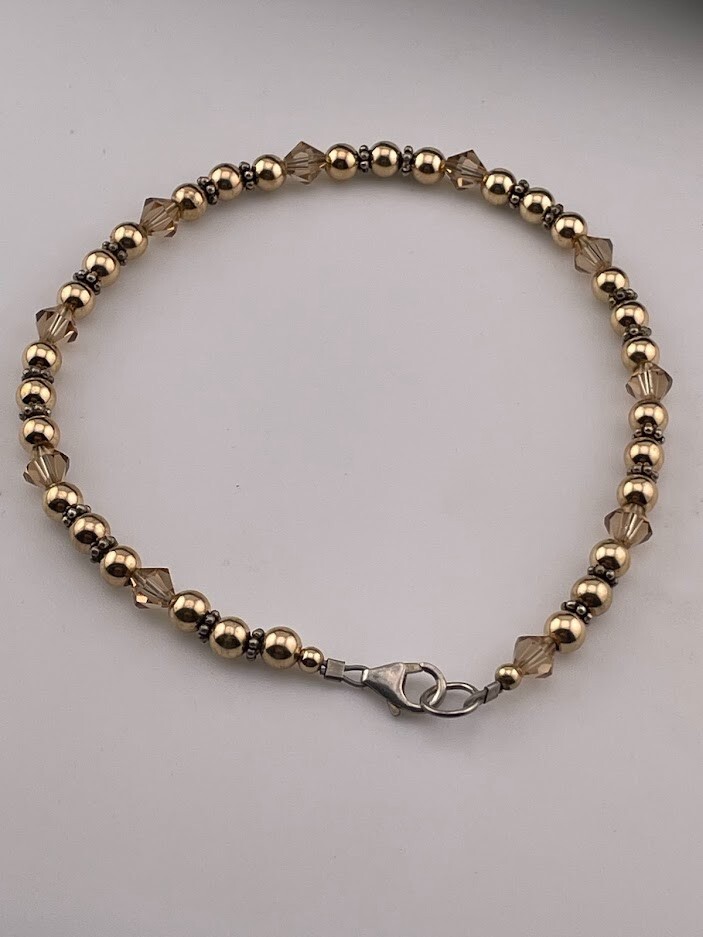 14K GOLD FILL 925 STERLING SILVER CRYSTAL BEADED ANKLET BRACELET 2719 ****************************** Thank you for your interest in our jewelry. We?d like to introduce ourselves. We are just a retired couple who love matching our customers with great jewelry. We?re not professional jewelers. To have the best shopping experience we like to recommend the following: Please measure your hand, wrist, finger or neck to ensure the best fit. We can use your measurements to help with sizing. Please ask all the questions you want. We know some stuff and, if we don?t, we?ll do the research. We like to learn too. More Stuff: If an item is described as ?gold over 925 sterling silver? this means it is gold vermeil. Vermeil is the process by which a layer of gold (usually 14k or 18k) is bonded to sterling silver. We only clean with gentle soap and warm water to avoid damage. The items we sell may be new or pre-owned and may have normal wear, slight damage, and/or tarnish. We make every effort to ensure the items we sell are as described. This includes testing to confirm metal purity if the item isn?t marked, and testing for gemstone identity. We try to put measurements in the jewelry description and include a photo of each piece with a U.S. quarter (25mm).
