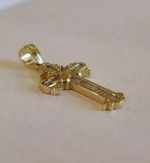 Elevate your accessory collection with the 14K Yellow Gold Plated Cross Pendant, a harmonious blend of elegance and spiritual significance. The pendant showcases a 2.36 Ct baguette-cut simulated diamond, meticulously set in a gleaming bezel setting that enhances its natural luster. The simulated diamond's color and clarity resemble the ideal standards, ensuring a radiant display that's sure to catch the eye. Crafted with Sterling Silver as the base metal and coated with a thick layer of yellow gold, this pendant exudes a classic charm with a touch of modern brilliance. It's nickel-free and comes with a secure spring-ring closure, making it a comfortable choice for daily wear. Whether it's an anniversary, birthday, or any other special occasion, this pendant is a versatile piece that adds a touch of sophistication to any outfit.
