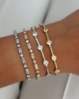 $ 123.95Gold Plated Tennis Bracelet: Clover Charm, Cubic Zirconia, Adjustable