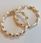 Elevate your style with these stunning gold-filled hoop earrings. Crafted with meticulous attention to detail, these earrings feature an intricate twisted design that adds texture and dimension to any outfit. The hoops are medium-sized, making them perfect for both everyday wear and special occasions. The gold-filled material ensures durability and a long-lasting shine, giving you the luxurious look of gold without the hefty price tag. These earrings are lightweight and comfortable to wear, with a secure clasp that keeps them in place all day. Add a touch of elegance and sophistication to your jewelry collection with these exquisite gold-filled hoop earrings. Features : Material: Gold-filled Design: Twisted texture Size: Medium Closure: Secure clasp Lightweight and comfortable Perfect for everyday wear or special occasions Dimensions: Diameter: Approximately 2.75 inches Why Choose Gold-Filled? Unlike gold-plated jewelry, gold-filled pieces are created with a thicker layer of gold, ensuring a longer-lasting finish that resists tarnish, flaking, and wear. With proper care, these earrings will maintain their beauty for years to come.