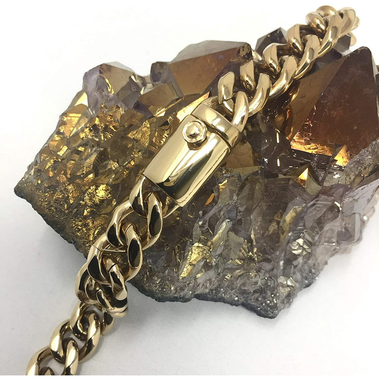 🌟MODERN CLASSIC - Add style to a basic look with this solid 14K gold 11MM Curb chain. Our diamond-cut beveled links are much more reflective than the standard curb chain for a rich, perfect shine. It is strong and durable for daily wear yet not too thick for a comfortable fit. Wear alone with casual or formal attire for everyday modern elegance, with a favorite pendant for a personal statement or as a great layering chain. Visit our store for a full selection of chains. 🌟PERFECT GIFT FOR HIM OR HER - Elegant unisex necklace for those who appreciate beautiful and unique Italian jewelry. This timeless essential is the perfect gift idea for husband, wife, son, daughter, mom, dad, brother, sister, boyfriend, girlfriend, best friend or for you. Give someone special luxurious fine jewelry to rock from day to night with style. 🌟GIFT BOX INCLUDED - Our jewelry is shipped in an elegant gift box, ready to treat yourself or a loved one for any anniversary, Birthday, Christmas, Father’s Day, Mother's Day, Valentine’s Day, Wedding, Graduation, and any other holiday or special occasion gifting. From cool modern to classic vintage, offers high-quality affordable sterling silver jewelry for men and women, comfortable for everyday wear and for all occasions. EACH CHAIN IS HAND MADE AND THE LINKS ARE WELDED TOGETHER, THIS IS A ONE OF A KIND NECKLACE YOU WILL FIND ON THE MARKET FOR THIS PRICE, We only use 14k GOLD (THE PUREST form of gold which has a distinctive shiny pure gold ) instead of 10k! No cheap metals copper (turns green) or nickel which can irritate your Skin, Chains have been tested and they are NICKLE, LEAD, and ALLERGY FREE so your skin is safe with our chains OUR TRADE SECRET IS SEMI-PRECIOUS alloy of the best bonding metals ensures the LOOK OF SOLID GOLD and LONG LIFE of the item. WE USE LATEST PVD PROCESSING TECHNOLOGY to provide a good gold color and a wear-resistant surface. Message us if interested in different sizes. 100% UNCONDITIONAL FREE LIMITED LIFETIME GUARANTEE AND REPLACEMENT FOR ALL BINTU JEWELRY ITEMS! Due to the fact that each piece is carefully hand-made, sizes may vary just slightly.