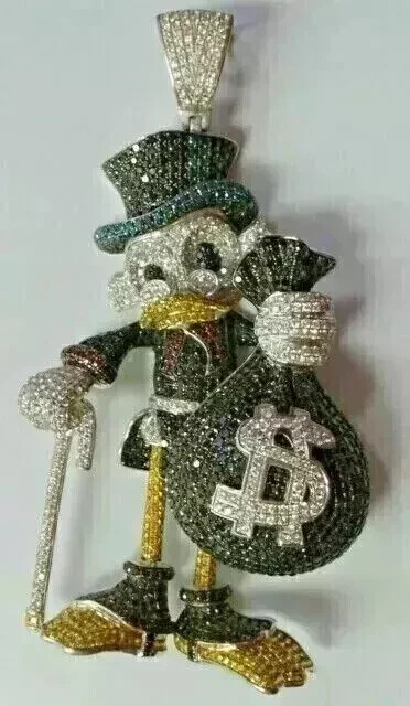 Elevate your jewelry collection with the exquisite 14K three-tone gold-plated Donald Duck Pendant. This charming piece is adorned with a 4Ct round black simulated diamond that radiates elegance and sophistication. The pendant boasts an exceptional cut grade, reflecting light beautifully to create a dazzling effect that's sure to turn heads. Crafted from high-quality sterling silver with a metal purity of 925 parts per 1000, this pendant is both nickel-free and handmade, ensuring both style and comfort. The design features a prong setting that securely holds the simulated diamond, which is not enhanced, preserving its natural allure. With the versatility to personalize, this pendant makes for a thoughtful and memorable gift for any occasion.