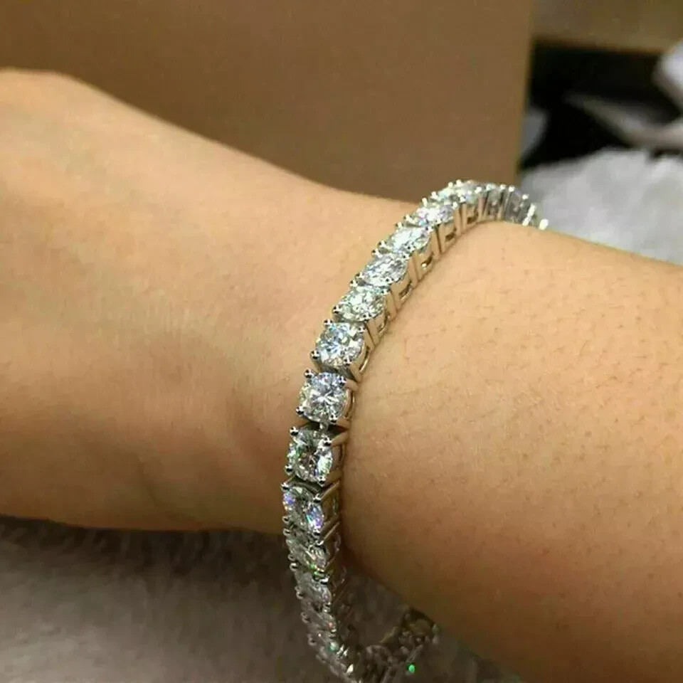 8CT Round Lab-Created Sapphire Tennis Bracelet for Women in 14K White Gold Plated