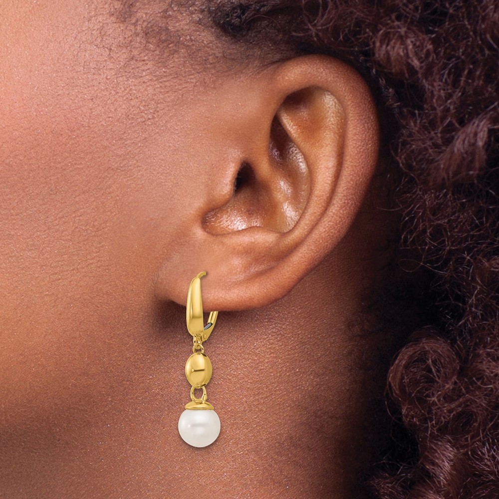 $ 1272.4814k Two-tone Gold Polished Diamond-cut Twisted J-Hoop Earrings L-35.6 mm 2.66gm