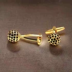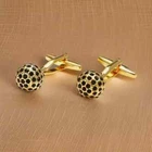 14K Yellow Gold Plated Cufflinks For Men 1.10Ct Lab Created Round Black Diamond