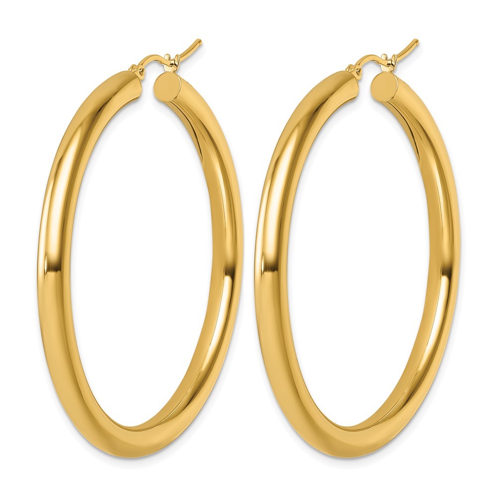 $ 876.4814K Yellow Gold Diamond-cut 2mm Round Tube Hoop Earrings L-40 mm, W-40 mm 1.86gm