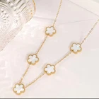 This elegant 14K gold-plated stainless steel clover necklace features a double-sided pendant with a delicate five-leaf petal design, symbolizing luck and beauty. Designed for everyday wear, its durable, tarnish-resistant material ensures long-lasting shine. The versatile, stylish piece pairs effortlessly with any outfit, making it a perfect gift for women who love timeless jewelry. Lightweight and comfortable, this chic floral necklace adds a sophisticated touch to any look. 5-7 day delivery times.