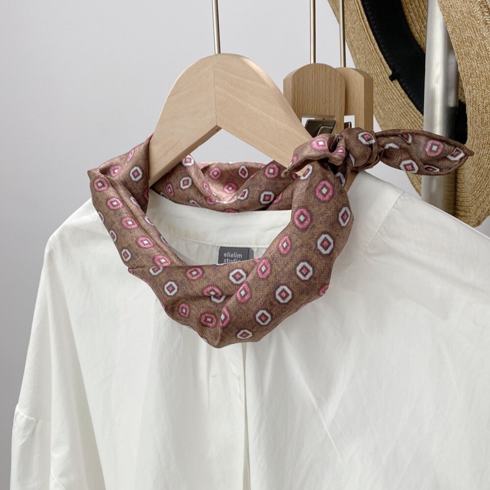 New Boutique 14Momme Twill Silk Scarf Necktie Hairband Print Square Scarf 53cm+