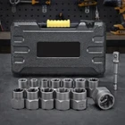 (14PCS WITH BOX)--Impact Bolt & Nut Remover Set 14 Pieces Bolt Extractor Tool Set with Storage Case Nut Bolt Extractor Sleeve Set Damaged Bolt Nut Remover Extractor Socket Tool Feature: High-Quality Alloy Material: This impact bolt & nut remover set is made from high-quality alloy material, providing exceptional hardness and durability. The sturdy construction ensures that each piece can withstand high torque and perform reliably during bolt and nut removal tasks. Customers can rely on the set for long-lasting use. Wide Range of Sizes: The bolt extractor tool set includes a variety of sizes to cater to different needs. With multiple options available, you can effortlessly tackle bolts and nuts of various dimensions. Whether it's a small or large fastener, this versatile set has you covered, making it suitable for a wide range of applications. Convenient Plastic Case: The nut bolt extractor sleeve set comes neatly organized in a plastic case. Each piece is labeled with its corresponding size, allowing for easy access and storage. The compact and portable case ensures that your tools stay organized and protected, making it convenient to carry and use anywhere. Ideal for Mechanical Repairs: This damaged bolt removal tool is specifically designed for mechanical repairs. Whether you're a professional mechanic or a DIY enthusiast, these tools are essential for removing stubborn or damaged bolts and nuts. They provide the necessary grip and leverage to tackle even the toughest fasteners, saving you time and effort. Versatile DIY Tool: In addition to mechanical repairs, this damaged bolt nut remover extractor socket is also perfect for various DIY projects. From furniture assembly to home improvement tasks, these tools come in handy when you need to remove or replace bolts and nuts. Their versatility makes them a valuable addition to any toolbox.