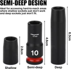 Mayouko 14PCS 3/8" Drive Semi-Deep Impact Socket Set, 8-22MM, Metric, CR-MO, Impact Grade Middle Length Socket Set, 6 Point Includes: 14pcs 3/8" drive sockets: 8, 9, 10, 11, 12, 13, 14, 15, 16, 17, 18, 19, 21, 22mm Impact sockets are constructed from chrome molybdenum steel with black phosphate finish, which can be used with high torque impact tools Semi-deep length(1.8") provides added reach over standard depth sockets and allow better access in confined spaces where deep sockets are hard to access High torque 6-point design prevents round-off, reduce fasteners wear.High contrast laser etched and stamped markings for easy and permanent identification of pieces and sizes The durable blow-molded carrying case for easy transportation, safe storage, each slot marks with corresponding size Shipping We offer FREE shipping on all orders! We ship within Three business days of payment, usually sooner. Local pickups and combined shipping options are not provided at this time. Return You can return a product for up to 30 days from the date you purchased it. Any product you return must be in the same condition you received it and in the original packaging. Please keep the receipt. Payment We accept payment by any of the following methods: PayPal Please pay as soon as possible after winning an auction, as that will allow us to post your item to you sooner! Feedback Customer satisfaction is very important to us. If you have any problem with your order, please contact us and we will do our best to make you satisfied. Contact Us If you have any queries, please contact us via ebay. We usually respond within 24 hours on weekdays. Please visit our eBay store to check out other items for sale! Thank you for shopping at our store.
