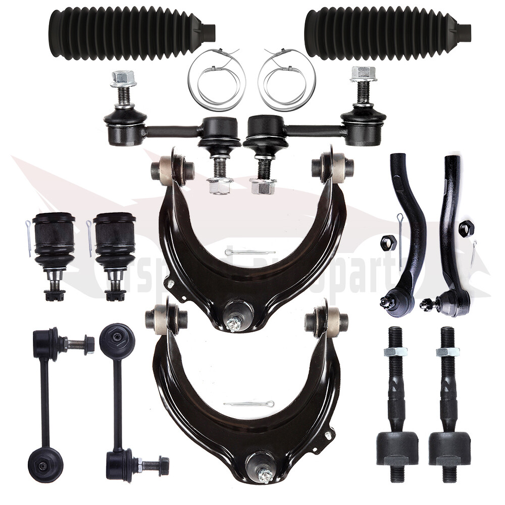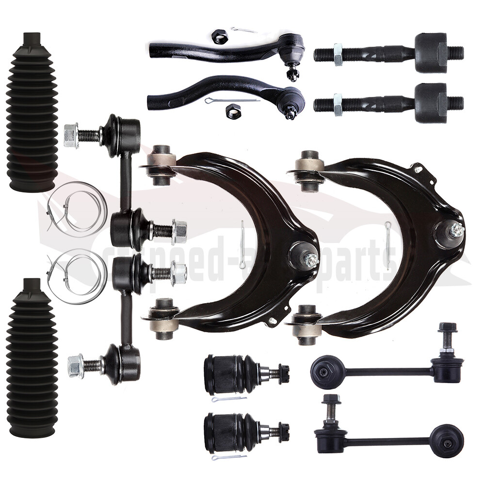 1.Fit For 2006-2007 Honda Accord 3.0L 6Cyl V (2997)(-) 2003-2005 Honda Accord 3.0L 6Cyl V (2977)(-) 2.Package Includes: Cfspeed-autoparts 14PCS Front Upper Control Arms Inner Outer Tie Rod End Fits 2003-07 Honda Accord 1.Fit For 2006-2007 Honda Accord 3.0L 6Cyl V (2997)(-) 2003-2005 Honda Accord 3.0L 6Cyl V (2977)(-) 2.Package Includes: 2x Part# Front Lower Ball Joint-K80228 1x Part# Rear Sway Bar End Link - Passenger Side-K90342 1x Part# Rear Sway Bar End Link - Driver Side-K90343 1x Part# Front Upper Control Arm And Ball Joint - Passenger Side-K620616 1x Part# Front Upper Control Arm And Ball Joint - Driver Side-K620617 1x Part# Front Outer Tie Rod End - Passenger Side-ES80287 1x Part# Front Outer Tie Rod End - Driver Side-ES80288 2x Part# Front Inner Tie Rod End-EV80208 1x Part# Front Sway Bar End Link - Driver Side-K90660 1x Part# Front Sway Bar End Link - Passenger Side-K90661 2x Part# Rack and Pinion Bellow-103-3076 3.Notes (1).Please check the fitment chart above before payment making sure all the suspension parts listed on this page are compatible with your automobile. (2).Please refer to Moog official website before narrowing down your search so as to avoid unnecessary item not as described return requests. (3).Please contact our customer services for targeted discount after all the items are received if you have reached any targeted discount thresholds, the terms of which is at the bottom of this page. Ball Joint Replacement Guideline: If there is a knocking or clunking noise in the area of the front axle when the car is traveling over road bumps, potholes or curbs, then there is usually a defect in a component of the wheel suspension. Picture(A) The side of the front axle from which the (vibration) noise is emanating can already be determined during a test drive. The type of noise also already provides certain indications for maintenance regarding which components might be faulty. Picture(B) 1.Raise the vehicle and remove the front wheels. 2.To loosen the fastening screws and fixing nuts of the compression ball joint more easily, spray them with rust remover and allow to act for a few minutes. Picture(C) 3.Loosen the fastening screws of the broken ball joint on the control arm and remove the nuts. Picture(D) 4.Loosen and remove the fixing nut of the ball joint on the steering knuckle. Tip:If the ball stud rotates, hold the ball stud in place with a hexagon socket. Picture(E) 5.Remove the bad or worn ball joint from the control arm. 6.Loosen the compression ball joint on the steering knuckle using a suitable special tool. Picture(F) 7.Clean the cone connection. Tip:For better sealing and durability of the ball joint sleeve, a little silicone grease can be applied to the contact surface. Picture(G) 8.Insert new compression ball joint in the control arm and steering knuckle and tighten with new fixing nuts. 9.Reinstall front wheels. Lower the vehicle and tighten the wheel studs to the tightening torque specified by the vehicle manufacturer. 10.Measure the chassis and adjust it using the various holes on the compression ball joint if necessary. 11.Finally, carry out a test drive. Sway Bar Stabilizer Link Replacement Guideline: While driving, the following signs may indicate a faulty sway bar stabilizer link: (1).Rattling and thumping noises on rough roads. (2).Imprecise vehicle handling. (3).Stronger inclination of the vehicle during cornering. If the sway bar stabilizer link is found to be defective, it should be replaced as described below. Picture(A) 1.Raise vehicle and remove front wheels. Tip:Always check both stabilizer links and replace them in pairs if necessary. 2.Spray fastening nuts of the stabilizer link with rust remover and let act for a few minutes. Picture(B) 3.Loosen the lower fastening nut of the stabilizer link at the stabilizer and remove. Tip:If the ball stud also starts to turn, hold it with a suitable tool. 4.Press stabilizer link out of torsion bar. Picture(C) 5.Loosen the upper fastening nut of the stabilizer link at the suspension strut and remove it. Tip:If the ball stud also starts to turn, hold it with a suitable tool. Picture(D) 6.Press stabilizer link at suspension strut out of bracket. Picture(E) 7.Insert new stabilizer link at suspension strut. Picture(F) 8.Tighten stabilizer link at suspension strut to the tightening torque specified by the vehicle manufacturer. Tip:Secure the ball stud against twisting with a suitable tool. Picture(G) 9.Insert new stabilizer link at stabilizer. 10.Tighten stabilizer link at stabilizer to the tightening torque specified by the vehicle manufacturer. Tip:Secure the ball stud against twisting with a suitable tool. Picture(H) 11.Remount the front wheels. Lower the vehicle and tighten the wheel studs to the tightening torque specified by the vehicle manufacturer. Tip:Even if replacing the stabilizer link does not directly affect the chassis setting, we recommend checking the axle setting and adjusting if necessary after working on the suspension. 12.Conclude with a test drive. Tie-Rod End Replacement Guideline: If you feel a bump in the steering when driving over road bumps or curbs, this might be due to worn tie rod ends or inner tie rods. Clicking noises during sudden steering movements can also be symptoms of a defective tie rod. In order to determine the exact cause and replace the defective tie rod, the car must be elevated with a vehicle lift in order to be examined more closely. This useful tip applies to the exchange of tie rod ends and inner tie rods, which together form the so-called tie rod. Picture(A) Note: Cleanliness is extremely important when working on the power steering. Incorrect work and contamination can lead to leakage and, in the worst case, to failure of the steering assistance. 1.Lift the vehicle and dismount the front axle wheels. 2.Spray the fastening nut of the tie rod end with rust remover and leave it on for a few minutes. Picture(B) 3.Dismount the front underride guard. Picture(C) 4.Loose