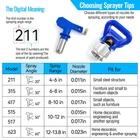 14Pcs Reversible Spray Paint Nozzle Tips, Airless Paint Sprayer Guns, with Spray Gun Filters and Protective Seat, Spray Paint Machine Parts, for House, Car, Hull Painting (211, 315, 417, 515, 517, 623 Practical: Our reversible spray paint nozzle set can be sprayed stably, the coating is uniform and delicate, which can effectively reduce the loss. It is a must-have painting accessory for painters and decorators. Model: Our airless paint sprayer has 6 models: 211, 315, 417, 515, 517, 623. The spraying angle is 20° - 60°, the range of spray width of paint sprayer gun can be seen in the picture. Material: Our airless paint spray gun tip set is made of high -hardness tungsten steel. It is strong and durable, not easy to wear, and has a long service life. High precision, spray stable. Easy to use and clean: Upgrade airless paint spray nozzle can be installed quickly in a short time without using tools. After use, you only need to rotate the nozzle to clean it, which is convenient and fast. Applicable scenario: We provide you with 6 spray paint nozzles, 2 protective seats, and 6 filters. It can be used for house renovation, hull painting, car painting and other scenarios to meet your daily painting needs.