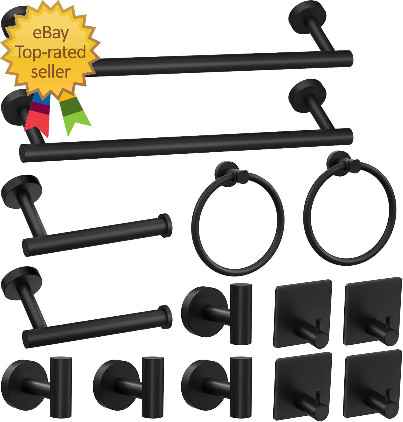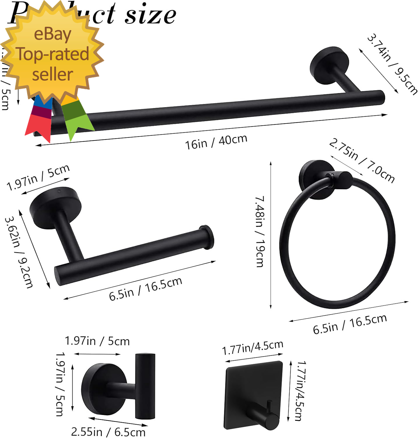 Store New Arrivals Add to Favorite View Feedback Contact 14-Pieces Matte Black Bathroom Accessories Set Stainless Steel Bathroom Hardware Description 14 Pieces Combination - 2 x 16 inches towel bar, 2 x Toilet paper holder, 2 x Towel ring, 4 x Robe & towel hooks, 4 x Adhesive hooks. Premium Material - black bathroom hardware set are constructed from stainless steel which prevents rust and corrosion in your bathroom for long lasting durability. Easy Installation - concealed Screw mount, wall mount, built-in installation instructions. You can easily to install the bathroom accessories with all the mounting accessories included, following the instruction video on this product website. Modern & Safe Design - the matte black bathroom hardware kit can match your black shower faucet and bathroom faucet perfectly. Wide Application - the black bathroom accessories set for bathroom, which is ideal for bathroom, outdoor shower and remodeled bathroom closet, kitchen cabinet, Laundry room, sitting room, etc. Style Modern Color Matte Black 14 Pieces Material Stainless Steel Material Type Stainless Steel Included Components function(f) {var _np=(window.P._namespace("DetailPageProductOverviewTemplatesJava"));if(_np.guardFatal){_np.guardFatal(f)(_np);}else{f(_np);}}(function(P) { P.when('A').execute(function(A){ A.on('a:truncate:po-attribute-truncate-4:updated', function(data) { var isTruncated = !data.truncateInstance.getIfTextFits(); var seeMoreElement = document.getElementById('po-attribute-see-more-id-4'); if(seeMoreElement) { seeMoreElement.style.display = isTruncated ? '' : 'none'; } }) }); })); 2 x 16 inches towel bar, 2 x Toilet paper holder, 4 x Robe & towel hooks, 2 x Towel ring, 4 x Adhesive hooks See more Finish Type Matte Style Name Modern ABOUT US "Prior to making any purchase from our store, it is crucial for you to acquaint yourself with who we are. My name is Muhammad Alam, I live in a very large state in the USA, "CALIFORNIA", and I am the proprietor of this store My Smartek . I have been affiliated with eBay since Dec 28, 2023. At our store, we pride ourselves on providing the most competitive prices for top-notch products. Our extensive E-store encompasses a diverse range of items, including media such as books, movies, music, and games. Additionally, we offer an array of electronic gadgets, toys, sporting apparel, clothing, tools, general home and garden items, and much more. Should you require any further information or assistance, please feel free to contact me. We are dedicated to ensuring your satisfaction and look forward to serving you with the best quality products and customer service." SHIPPING We are always working hard to ensure your package arrives as soon as possible. Please understand that some factors like weather, high postal traffic, and the performance of shipping companies are outside of our control. We offer free shipping to the lower 48 states and ship within 2 business days of payment, usually sooner. We do not accept P.O. Boxes. Please provide a physical address. For shipping outside of the continental USA, we only use eBay's Global Shipping Program. The item is shipped to KY and then sent to the rest of the world. International customers are responsible for all duties and taxes. Continue to 'check out' to calculate costs for shipping the item to your country. Messages regarding eBay's Global Shipping Program MUST be directed at eBay EXCLUSIVELY. RETURNS We do not return items, but we will only consider a return if the item is received broken or if the wrong size is sent to you. Otherwise, we will not accept returns. FEEDBACK OF OUT ITEM "After purchasing our item, once you have received it and are satisfied, we kindly request you to leave positive feedback. This will help others, like your friends, to learn about the item's quality and your experience. Thank you for choosing to buy this item from our store!"