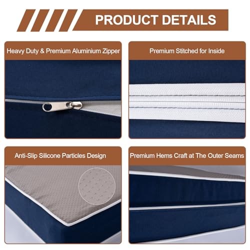 UPC: Does Not Apply Item Length: 1 gtin13: Does Not Apply Fabric Type: Polyester Material: Polyester Closure Type: Zipper, Ties Size: 25.6"L x 25.6"W x 4"H -14 covers Item Height: 1 Date First Available: February 29, 2024 Recommended Uses For Product: Garden, Balcony, Backyard, Lawn, Outdoor, Deck, Indoor, Patio Furniture Cover Type: Sectional Sofa Cover Number of Items: 14 Product Dimensions: 25.6"D x 25.6"W x 4"H Item Weight: 6 Pounds Style: Modern Type: Does Not Apply EAN: Does Not Apply Color: Navy Blue+white Piping Item model number: outdoor cushion covers Pattern: Solid Water Resistance Level: Water Repellent Brand: Does Not Apply Country of Origin: China Shape: Square Manufacturer: Does Not Apply Customer Reviews: 4.2 out of 5 stars MPN: Does Not Apply Item Width: 1 Special Feature: Anti-fading Product Care Instructions: Hand Wash Only Unit Count: 1.0 Count