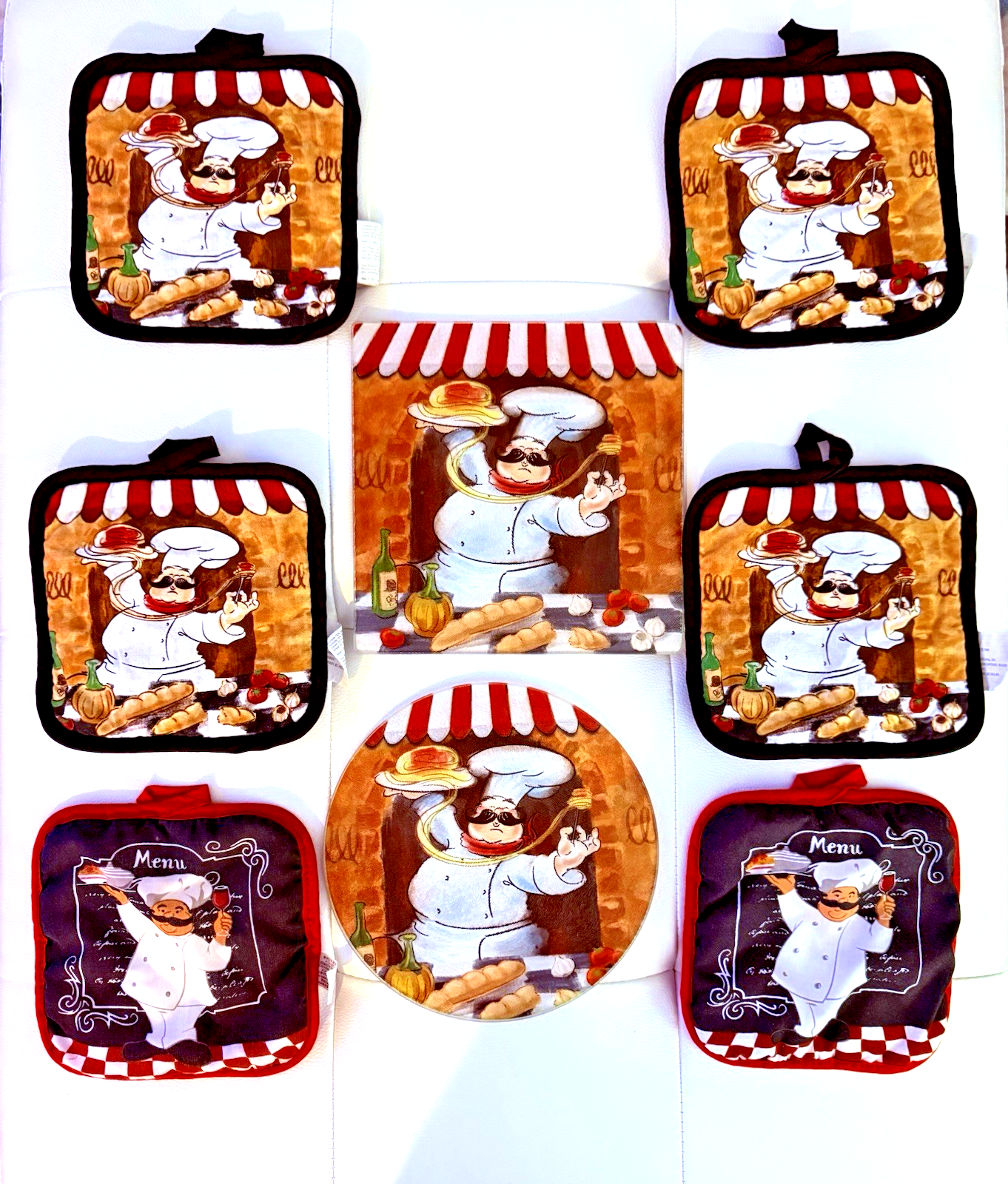 14-Piece Printed Kitchen Oven Mitt & Hot Pad Set in Chef Design