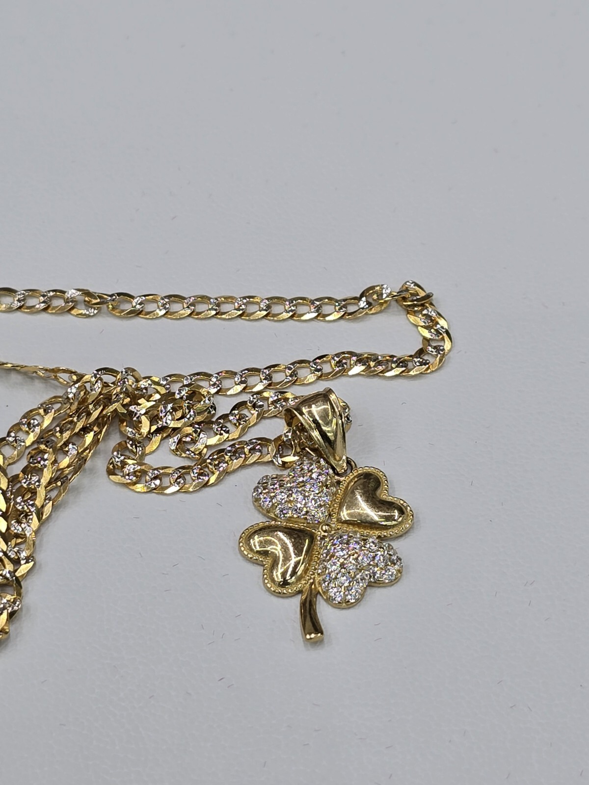 Add a touch of elegance to your Valentine's Day gift with this beautiful 14k gold necklace. The pendant features a clover shape with a prong setting, and the lobster closure adds a touch of sophistication to the overall design. The necklace is 18 inches in length and is made of multi-tone gold, making it a perfect accessory for any outfit. This nickel-free necklace is a charm type with a pendant/locket design. The clover-shaped pendant is perfect for any occasion, and the necklace is sure to be a memorable gift for your loved one. Made in the United States, this necklace is a great addition to any jewelry collection.