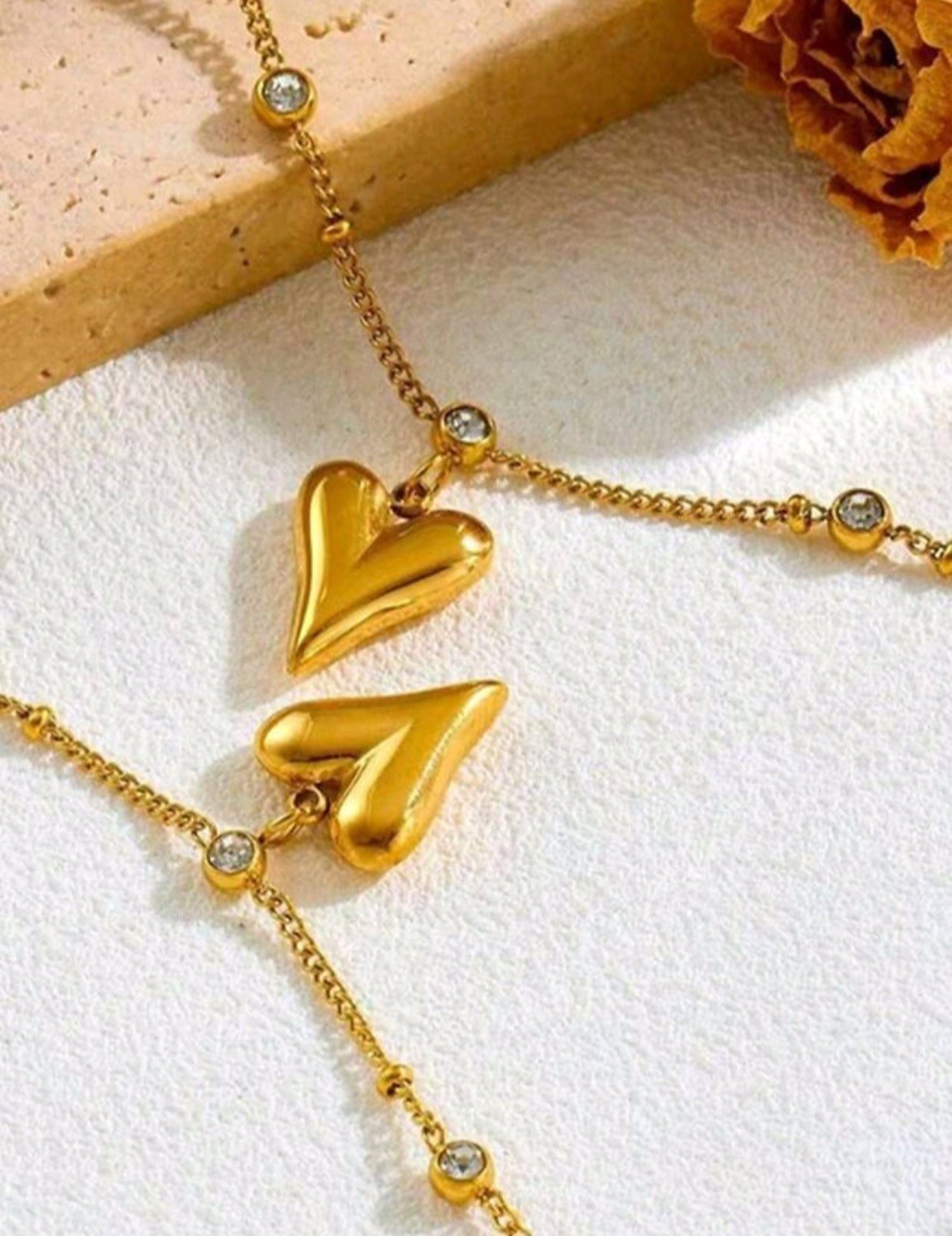 Add a romantic shimmer to your step with this 14K Gold Plated Heart Anklet, designed to express love and elegance with every movement. Featuring a sleek gold chain adorned with tiny bezel-set cubic zirconia stones and a dangling polished heart charm, this anklet is a dainty yet eye-catching piece perfect for summer, date nights, or daily wear. Made with a durable stainless steel base and finished in rich 14K gold plating, this anklet is non-tarnish, waterproof, and hypoallergenic, ensuring long-lasting shine and comfort even in warm weather. The adjustable clasp allows for a custom fit, making it a lovely and thoughtful gift for women of all ages. Whether you're shopping for a birthday, anniversary, or just because, this heart anklet makes a meaningful and stylish addition to any jewelry collection.