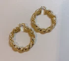 Elevate your style with these stunning gold-filled hoop earrings. Crafted with meticulous attention to detail, these earrings feature a unique twisted design that adds texture and dimension to any outfit. The hoops are medium-sized, making them perfect for both everyday wear and special occasions. The gold-filled material ensures durability and a long-lasting shine, giving you the luxurious look of gold without the hefty price tag. These earrings are lightweight and comfortable to wear, with a secure clasp that keeps them in place all day. Add a touch of elegance and sophistication to your jewelry collection with these exquisite gold-filled twisted hoop earrings. Features: Material: Gold-filled Design: Twisted texture Size: Medium Closure: Secure clasp Lightweight and comfortable Perfect for everyday wear or special occasions Dimensions: Diameter: Approximately 2 inches Width: Approximately 0.25 inches Why Choose Gold-Filled? Unlike gold-plated jewelry, gold-filled pieces are created with a thicker layer of gold, ensuring a longer-lasting finish that resists tarnish, flaking, and wear. With proper care, these earrings will maintain their beauty for years to come.
