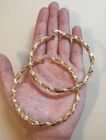 Elevate your style with these stunning gold-filled hoop earrings featuring a unique twisted design. Crafted with meticulous attention to detail, these earrings add texture and dimension to any outfit, ensuring you stand out effortlessly. The medium-sized hoops are perfect for both everyday wear and special occasions. The gold-filled material ensures durability and a long-lasting shine, giving you the luxurious look of gold without the hefty price tag. These earrings are lightweight and comfortable to wear, with a secure clasp that keeps them in place all day. Add a touch of elegance and sophistication to your jewelry collection with these exquisite gold-filled twisted hoop earrings. Features: Material: Gold-filled Design: Twisted texture Size: Medium Closure: Secure clasp Lightweight and comfortable Perfect for everyday wear or special occasions Dimensions: Diameter: Approximately 2.2, 3 inches Width: Approximately 0.1, 0.2 inches Why Choose Gold-Filled? Unlike gold-plated jewelry, gold-filled pieces are created with a thicker layer of gold, ensuring a longer-lasting finish that resists tarnish, flaking, and wear. With proper care, these earrings will maintain their beauty for years to come.