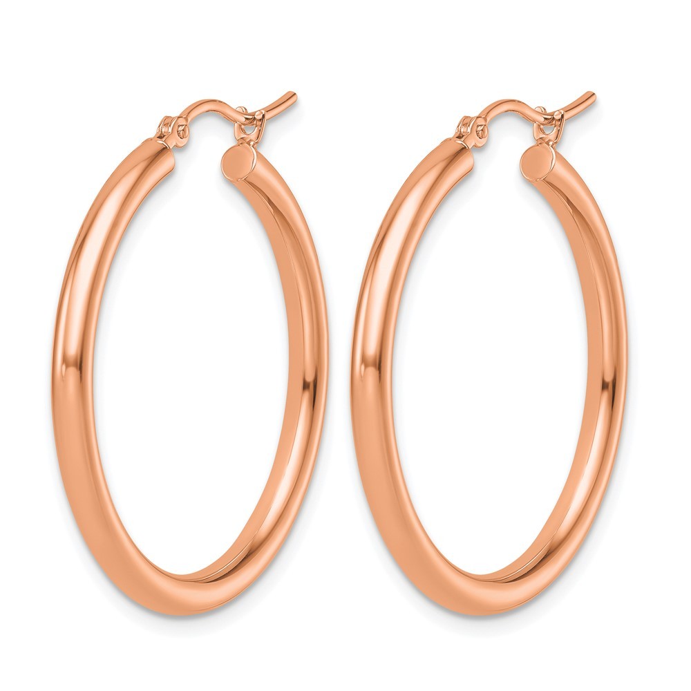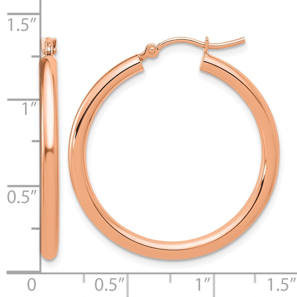 Material: Primary - Purity:14K|Finish:Polished|Length of Item:30 mm|Feature:Lightweight|Manufacturing Process:Tubing|Material: Primary:Gold|Thickness:2.5 mm|Warranty:Lifetime Guarantee|Item Weight U/M:gm|Width of Item:30 mm|Product Type:Jewelry|Jewelry Type:Earrings|Sold By Unit:Pair|Material: Primary - Color:Rose|Earring Closure:Wire & Clutch|Earring Type:Hoop|Feature 2:Hollow All weights and measurements are approximate and may vary slightly from the listed information. Welcome to diamond_6720 Payments We accept all Ebay approved payment. Please sent the payment to us within 8 days after the auction has ended, or you will have unpaid case auto open by eBay. Shipping Policy We will ship all items within 1 business days of purchase during the work week (M-F) excluding holidays. If you order on Friday, your order will be shipped the following business day. Tracking will be provided when it becomes available. We will only ship to a PayPal Verified Address. Please make sure your address is current and correct. If the information does not match, your order may be canceled. Buyers are responsible for all customs, duties and taxes for your respective countries. Delivery times for International Shipping will vary. California Buyers Pay 9.0% Tax on all orders. case auto open by eBay. Return Policy & Exchange Returns or Exchange are accepted. Buyer must contact us within 30 days after the item is received. Item must be returned in unworn and resalable condition. We will only issue a refund for the purchase price, excluding any shipping fees. If we are at fault, we will provide a full refund. Buyer is responsible for all return shipping costs. BUYERS FEEDBACK If you have any concerns regarding your purchase, please contact us via eBay Message, we assure you that a satisfactory resolution will be reached. Your feedback is very important to us Do remember to give us 5 star rating(*****) if you are satisfied with our product & service .