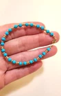 **GET LOWER PRICES ON OUR WEBSITE!! - BOCHELLIJEWELRY.COM - (not on here on our own website) ***THIS IS A HANDMADE ITEM AND IS STAMPED 14K ON THE CLASP*** THIS LISTING IS FOR ONE SOLID 14K GOLD and TURQUOISE BEAD BRACELET WITH LOBSTER CLASP Natural Sky Blue Sleeping Beauty 4mm Beads 14k Solid Yellow Gold 3mm Hammered Saucer Beads - Rose White Gold are NOT available. 14k Solid Yellow or Rose Gold 7mm Pear Shaped Lobster Clasp Flexible Non-Tarnish Steel Wire MEASURE YOUR WRIST!!! Before Ordering and ADD 1/2" (for 4-6mm beads only). DO NOT MEASURE ANOTHER BRACELET. OUR LENGTHS INCLUDE THE CLASP AND END PARTS. You can wrap a piece of string around then measure the string. * BUYER PAYS RETURN SHIPPING so please take a second to Measure and Determine The Length you need, so you can order the right length. Our Lengths Include the Clasp/End Parts. • IMPORTANT: Measuring a bracelet made of different size beads than you are ordering from us will cause errors. Measure around Your Wrist then add 1/4". • We Photograph Items on a Ruler Before Shipping. If you believe we sent the wrong size, send us a photo of it on your ruler before opening a return stating its the wrong size. Note: Objects in Close Up Photos can Seem Bigger than they are. Compare measurements in the listing to Your Own Ruler before purchasing. ** 3-12mm gold beads available. Hundreds of Styles! see our shop WHAT ITS STRUNG ON: IF IT SAYS CHAIN IN THE TITLE: then its strung on 14k Solid Gold Chain. IF IT DOES NOT: then it uses flexible steel beading wire, steel chain or clear stretchy elastic cord. Most bead jewelry sold online and in stores is strung on steel beading wire or stretch cord because solid gold flexible wire would break very easily and cost a lot more. Only bead sizes 3mm and larger can be strung on our 14k solid gold chain. The holes of most gemstone beads are too small for chain. The term Solid Gold is used to differentiate Our Real Gold items from the plated or gold-filled items Sold by Others. PRODUCTION TIME: OUR ITEMS ARE HANDMADE AFTER YOU ORDER THEM. They are Not ready to go items. We ship in 3 business days. A business day is Mon-Fri. The day you order Does Not count. If you order on Monday it will not be due to ship until Thursday, etc. Faster Shipping Speeds are available at checkout. We Do Not accept rush order requests. REFUNDS: ITEMS MUST BE RETURNED IN THE SAME NEW CONDITION THAT THEY WERE RECEIVED WITHIN 30 DAYS OF RECEIPT. ITEMS ARE SHIPPED IN A GIFT BOX INSIDE A PADDED ENVELOPE. RETURNS MUST BE PACKAGED THE SAME WAY to insure there is no damage to the items. Damaged Items are Not Returnable for Any Reason. INTERNATIONAL BUYERS: We ship Fedex for a flat fee of $35. FEDEX REQUIRES A PHONE NUMBER FOR ALL INTERNATIONAL PACKAGES. Please add it to your shipping address. Approximate delivery speed is 6-10 days (we cannot guarantee this but it has been typical in our experience).