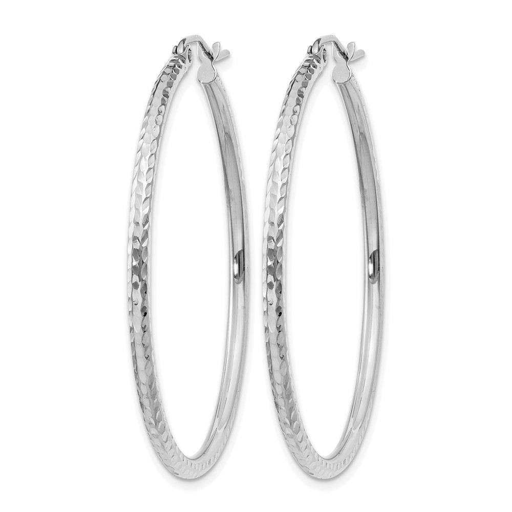 14k White Gold Diamond-cut 3mm Round Hoop Earrings L-30 mm, W-30 mm 2.2gm