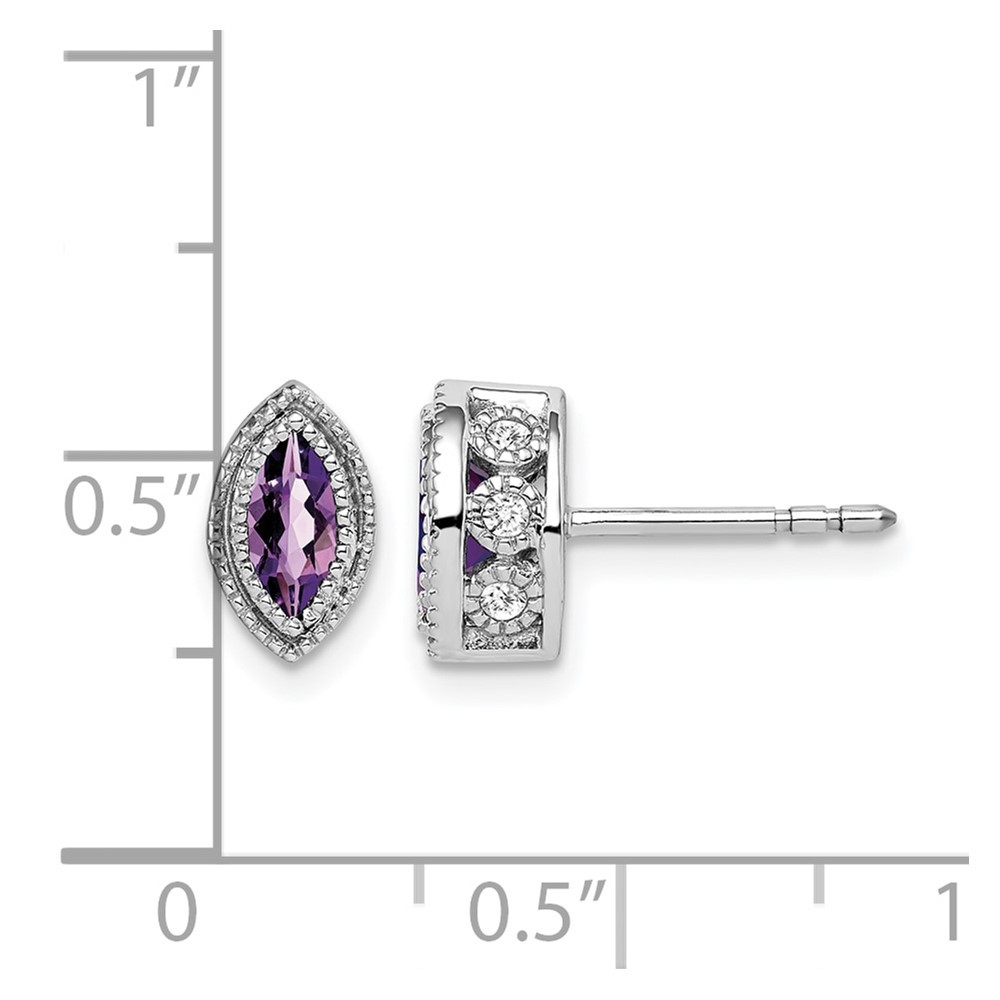 Features: Material: Primary - Purity:14K Finish:Polished Stone Type_1:Amethyst Stone Color_1:Purple Stone Quantity_1:2 Stone Quantity_2:12 Length of Item:9.4 mm Plating:Rhodium Stone Weight_1:0.25 ct Stone Weight_2:0.012 ct Manufacturing Process:Casted Stone Shape_1:Marquise Stone Size_1:6 x 3 mm Stone Size_2:1.4 mm Stone Treatment_1:Heating Width of Item:5.5 mm Earring Closure:Post & Push Back Earring Type:Button Stone Creation Method_1:Natural Earring Back Type:Friction Earring Style:Birthstone All weights and measurements are approximate and may vary slightly from the listed information. Welcome to diamond_6720 Payments We accept all Ebay approved payment. Please sent the payment to us within 8 days after the auction has ended, or you will have unpaid case auto open by eBay. Shipping Policy We will ship all items within 1 business days of purchase during the work week (M-F) excluding holidays. If you order on Friday, your order will be shipped the following business day. Tracking will be provided when it becomes available. We will only ship to a PayPal Verified Address. Please make sure your address is current and correct. If the information does not match, your order may be canceled. Buyers are responsible for all customs, duties and taxes for your respective countries. Delivery times for International Shipping will vary. California Buyers Pay 9.0% Tax on all orders. case auto open by eBay. Return Policy & Exchange Returns or Exchange are accepted. Buyer must contact us within 30 days after the item is received. Item must be returned in unworn and resalable condition. We will only issue a refund for the purchase price, excluding any shipping fees. If we are at fault, we will provide a full refund. Buyer is responsible for all return shipping costs. BUYERS FEEDBACK If you have any concerns regarding your purchase, please contact us via eBay Message, we assure you that a satisfactory resolution will be reached. Your feedback is very important to us Do remember to give us 5 star rating(*****) if you are satisfied with our product & service .