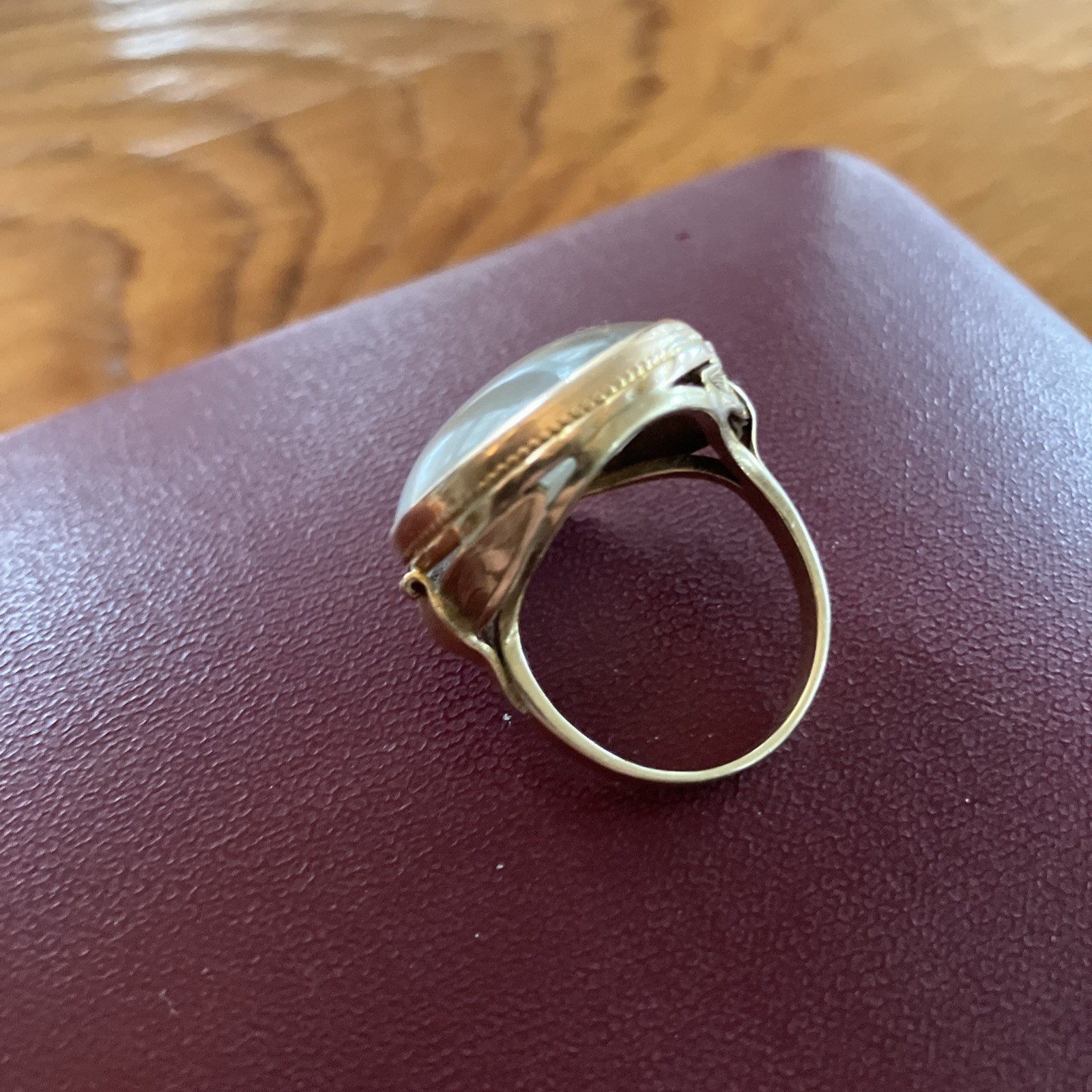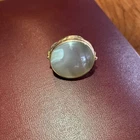 This vintage/ antique 14k Yellow Gold Cat's Eye Moonstone ring is a stunning piece of fine jewelry. The round, natural moonstone set in yellow gold exudes a sense of beauty and magic, making it a perfect choice for special occasions like engagements, weddings, or anniversaries. The ring is handmade and showcases a dome style, with a retro theme that adds a touch of fairytale and fantasy. The size 9.5 ring is resizable and features a white moonstone as the main stone, creating a unique and elegant piece that is sure to be a treasured item for any jewelry lover.