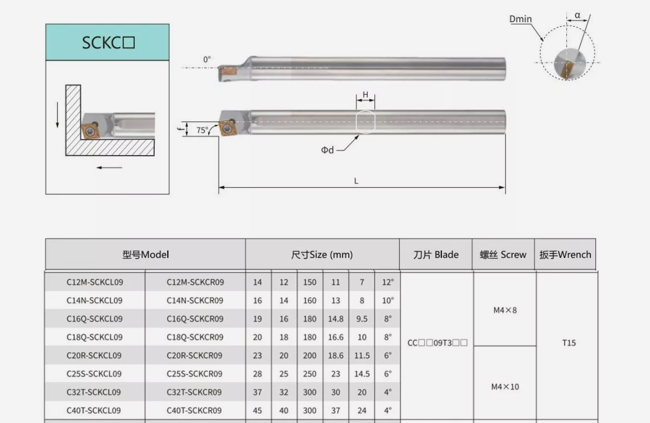 C16Q-SCKCR09 14mm 75° Lathe Solid Carbide Turning Tool Holder Boring Bar for CCMT09 Material Science;Cemented carbide / Tungsten steel Minimum machining aperture;19mm length;180mm diameter;16mm High quality products