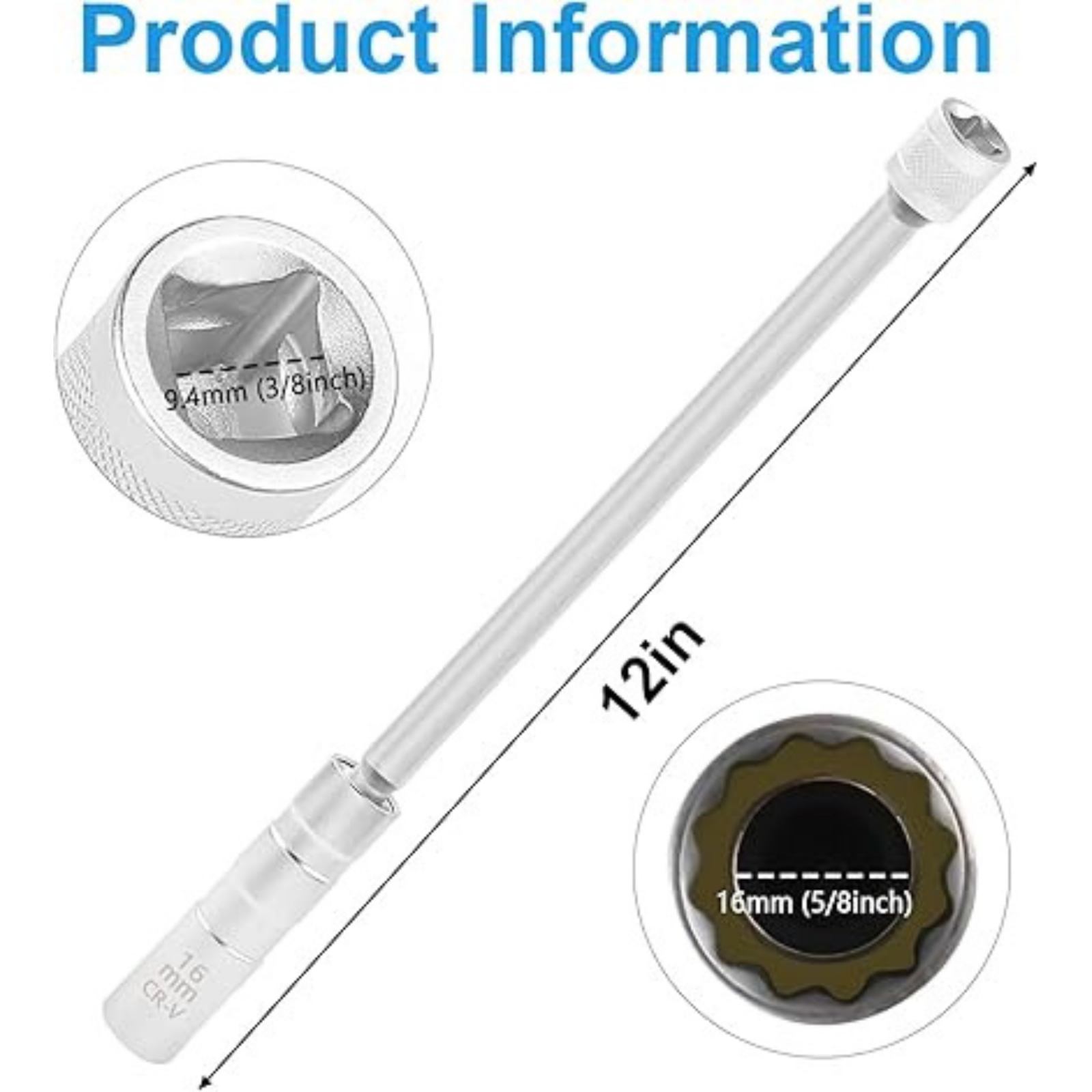 New 16MM Thin Wall Magnetic Swivel Spark Plug Socket 12-Point Removal Tool