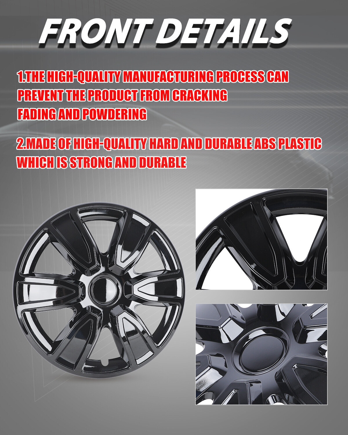 Store Categories Other Car Refrigerator Front Bumper Rear Bumper Fender Flares Inner Fenders Side Steps Running Board A-Pillar Light Mount Brackets Headlights Taillights Fog Lights LED Headlights LED Taillights LED Fog Lights Jeep Chevrolet Ford Toyota Dodge GMC Wheel Covers Features ✴ PERFECT FIT: This wheel hub cap is specifically designed to perfectly fit for 15-inch wheels, ensuring a seamless match and enhanced aesthetics. It complements the overall design of the vehicle, elevating its visual appeal. ✴ HIGH-QUALITY MATERIAL: Constructed from high-quality materials, this wheel hub cap guarantees durability and longevity. It withstands various road conditions and environmental factors encountered during daily driving, maintaining its pristine condition. ✴ EASY INSTALLATION: Installing this wheel hub cap is a breeze and requires no specialized tools or modifications. It comes with a user-friendly system, allowing for a hassle-free installation process by following the provided instructions. ✴ PROTECTIVE FUNCTION: Besides its aesthetic appeal, this wheel hub cap serves as a protective barrier for the wheels. It prevents scratches and potential damage caused by stones, debris, or other objects, safeguarding the wheel's surface. ✴ AFTER-SALES SERVICE: If There Is a Loss of Product Parts, or Any Parts of The Problem, We Can Provide After-Sales Service, Please Contact Us on The Order Page. Wheel Covers Specification ✴ Type: Hub caps ✴ Number in Pack: 4 ✴ Color: Black Lacquer ✴ Material: ABS+PC ✴ Compatible Wheel Diameter: 15 in ✴ Finish: Glossy ✴ Installation Type: Snap-On ✴ Model: Universal Hubcap for Iron Wheels, Not Fit For Toyota Prius Wheel Covers Package ✴ 1 Set of 4 Hub caps and 4 retention rings Payment Delivery details Terms of sales About us Contact us Payment We accept PayPal, credit card , Apple Pay & Google Pay etc. Delivery details All items will be shipped within 1-3 business days after payment received, we will try our best to ship out as soon as we can, hope for your understanding. Please double confirm your address and contact information, which will help the delivery faster and more accurately. Note :buyers who purchase international products need to pay import tariffs!!! Terms of sales Professional installation is highly recommended. Any problem of the item please feel free to contact us first , please D o Not leave negative feedback before that, or simply return it within 60 Days in original condition. We will resolve it for you ASAP. About us Any questions please do not hesitate to contact us directly by eBay message . We will reply you within 24 hours asap, thanks for your understanding. Contact us Should you have any problem or require any further information please feel free to contact us . If you are satisfied with our product and service, please kindly leave us a positive feedback. Popular Categories On May 7, 2025 at 00:17:27 PDT, seller added the following information: