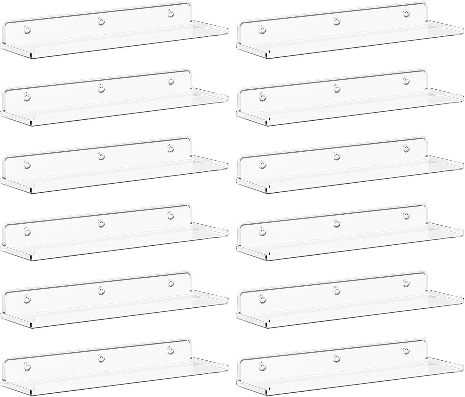 Product Description The video showcases the product in use. The video guides you through product setup. The video compares multiple products. The video shows the product being unpacked. Excellent Load Capacity Made from high-quality acrylic material, each shelf can hold up to 20 lb, ideal wall storage solution for your home. Space Saving Optimize the utilization of wall space to maximize efficient storage of a wide range of items. lip edge design Our lip-shaped floating shelf design ensures items stay securely in place. Thicker Structure Thicker back structure with added ribs greatly improves load-bearing capacity. Drill Hole Thickened drill hole on the back for securing the shelf to the wall. Smooth Edges Smooth edges design won't accidentally harm your hands. Fits Most Room Simple Style Design Material: Acrylic Install: Install upward or downward Size: 15"(38cm) x 4"(10.2cm) x 1.8"(4.6cm) Weight Capacity: 20 pounds Usage: Floating shelves can be installed in living rooms, bathrooms, bedrooms, kitchens, and other spaces. We provide all the necessary installation accessories, making the setup quick and hassle-free in just a few minutes. Previous page Next page 1 Bathroom 2 Living Room 3 Study Room 4 Kitchen Compare These Shelves Floating Shelves Buying Options Floating Shelves Buying Options Kid Bookshelves Buying Options Vinyl Shelves Add to Cart Customer Reviews 4.6 out of 5 stars 894 4.6 out of 5 stars 894 4.2 out of 5 stars 59 4.6 out of 5 stars 446 Price $15.99 $ 15 . 99 $15.99 $ 15 . 99 $23.99 $ 23 . 99 $17.99 $ 17 . 99 Number of Shelves 4/6/8/10/12 4/6/8/10/12 2/4/6/8 6/8/10/12 Color Clear White White/Pink/Clear Clear Size 15x4in 15x4in 15x3.4in 12x1.7in Material Plastic Plastic Plastic Plastic Usage Office, Bathroom, Living Room Office, Bathroom, Living Room Kid Room, Living Room Office, Bathroom, Living Room On Nov 26, 2024 at 10:26:46 PST, seller added the following information: