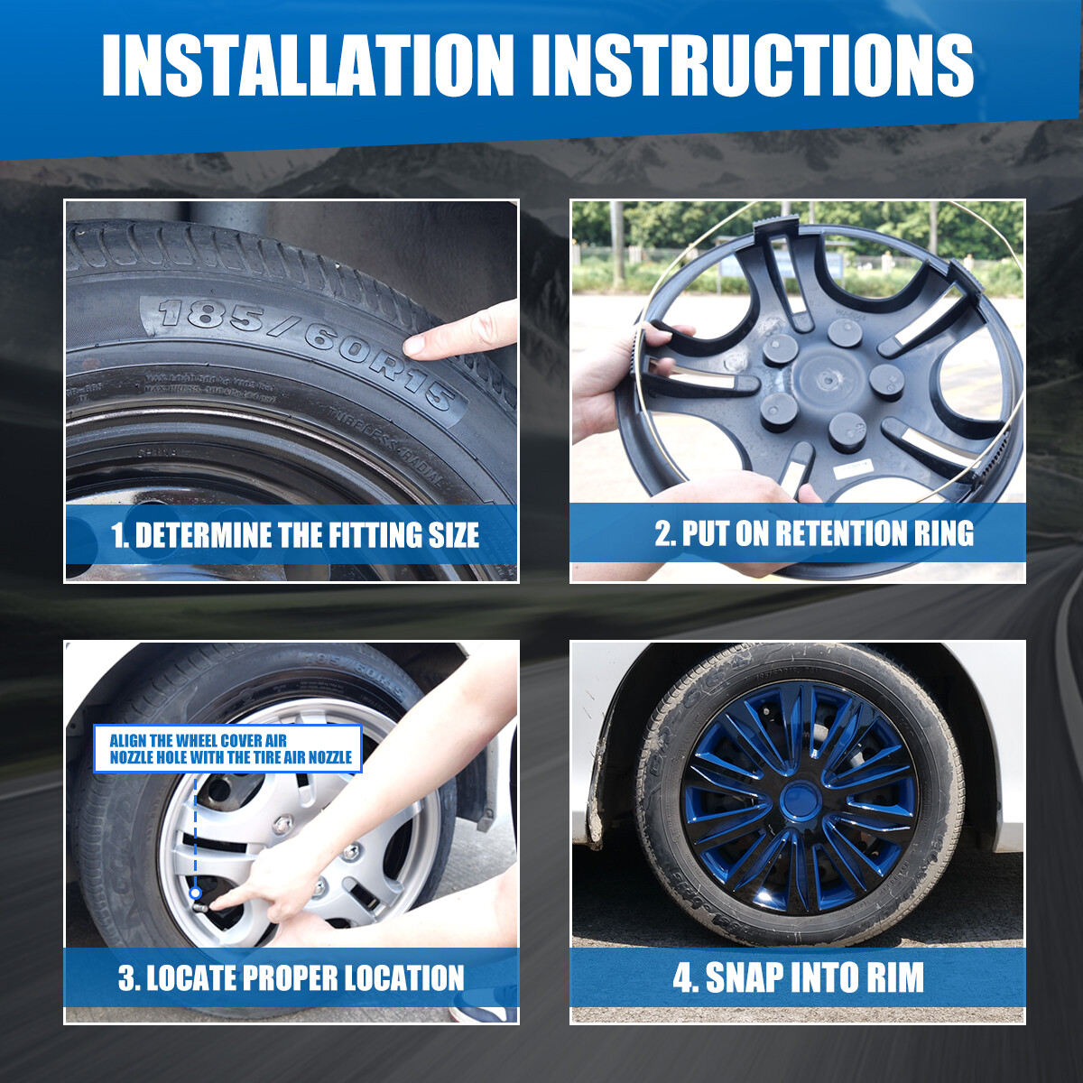 15" Black Blue 4Pc Wheel Rim Cover Hubcaps Hub Caps Fits R15 Tire & Steel Rim Feature: π Please ensure to check your tire/wheel size before purchase! designed for (p15) 15" stock steel wheels and will not fit over aluminum alloy wheels. π Designed from oem replica style wheelsβ for replacement with fast & easy snap-on installation - made from premium abs material β lab & road tested for performance and ultimate durability. π Adjustable retention rings assures firm grip gives support to the hubcaps making sure they stay in place. locate the curve on the retention ring and match to the tire air valve to install. π Installation instructions available - please refer to the images available as well as detailed instructions below for assistance. π Wolfx wheel covers fit most models of vehicle brands including acura, chevrolet, dodge, ford, honda, hyundai, kia, mazda, mitsubishi, nissan, subaru, toyota, volkswagen and more. Not fit forοΌ 2006-2018 VOLKSWAGEN JETTA SEDAN GEN 5 15 Inch Steel Wheel 2009-2014 GOLF WAGON 15 Inch Steel Wheel 2009-2014 VOLKSWAGEN JETTA/GOLF WAGON 15 Inch Spare Steel Wheel 2011-2018 GLI SEDAN 15 Inch Steel Wheel Specification: Quantity: 4 PCS Material: ABS Color: Black & Blue Lacquer Wheel Size: 15 inch Finish: Glossy Placement on Vehicle: Front/Left/Rear/Right Package Includes: 4* Wheel Cover Hubcaps Payment Delivery details Terms of sales About us Contact us Payment π We accept PayPal (Recommended), credit card, VISA, Google Pay & Discover etc. π Please submit your payment within 7 days after your purchase. π If not, eBay will automatically open an Unpaid Item Dispute on our behalf if the item(s) are not paid within 7 days. Delivery details π Please double check your delivery address and contact information. π All items will be shipped within 1 business days after payment received. π Tracking numbers will be easily accessible ASAP they are created and processed. Terms of sales π Free 30 days Return, we will cover the return post fee. π If a defective product was received, please do not hesitate to message us via eBay message. π We will response in 24 hours in business to resolve the problem π We stand behind our products. Items can be returned for exchange or full refund within 30 days from the date you receive. About us π Wolfstorm has a huge warehouse and office located in the United States. π All US domestic 48 states customers are able to benefit from the FREE SHIPPING services. π Our experienced, professional customer service representatives offers prompt and courteous service. π Best quality products, outstanding services and professional experience keep our customers. Contact us π Please feel free to contact us if you have any problems. π Emails will be replied within 24 hours in working days. π After hours emails will be replied on the next business day.