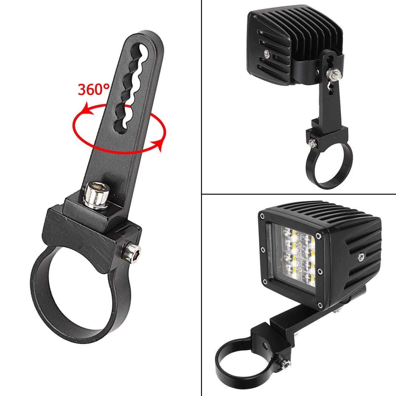 Why choose Samman-Tube Mount Clamps: Corrosion resistance and oxidation resistance Can be rotated 360 degree to adjust height and angle 6 holes (3*6mm/3*8mm) to adjust the height of the light bar to your demand Add more Work Lights on vehicle Without Drilling Firm, not easy to fall, very easy to Install and disassemble Secure the LED light bar on tube, such as bull bar/grille guard tube/roof rack/roll cage Keeps the LED Light Bars firmly on tube under all driving conditions 2 self-adhesive sponge pads to prevent car paint damage specification: Color: Black Hole Diameter: 38mm(1.5") Application: Apply to Most Cars, Trucks, ATV, SUV, Boats, Pickup, Offroad, Farm/Industry Vehicles etc. Fits round tubes/bull bar/roll bar/roll cage/bumper Material: made of high-quality, strong and black billet aluminum Package included: 2x 1.5" Roll Bar Mounting Bracket Clamps(Nuts screws required for assemble the clamp) 2x L-shaped wrench 2x self-adhesive sponge pads Note: Please make sure these clamps fit your vehicle before purchase. Adjustable - The light bar mounting bracket with 6 mounting holes allow you to adjust the mounting height, and it can also be Rotated 360 Degree to adjust the angle to your demand Universal Application - Apply to Most Cars,Trucks, ATV, SUV, Boats, Pickup, Offroad, Farm/Industry Vehicles etc. Perfect for roll cage, bumper guard, roof racks or other 1.5 inch tubular area to create unique mounting points on LED/HID/Halogen Light Bar, Spot/Fog/Driving Light with M6/M8 (6mm/8mm) mounting bolts No Drilling Required & Sponge Pad Protection - Can be easily installed on your beloved vehicle or boat without any drilling, and it’s also easy to disassemble, allowing you to add more lights to your vehicle or boat. Comes with 2 self-adhesive sponge pads to prevent car paint damage Powerful Support - With durable black billet aluminum & self-adhesive sponge design, these mount brackets will keep your lights from swinging, providing powerful support. And with the unique protective coating, the clamps can also prevent external damage Package - 2x 1.5" Bull Bar Clamps for Light Bar, 2x Screw set, 2x L-shaped Wrench, 2x Self-adhesive Sponge Pads