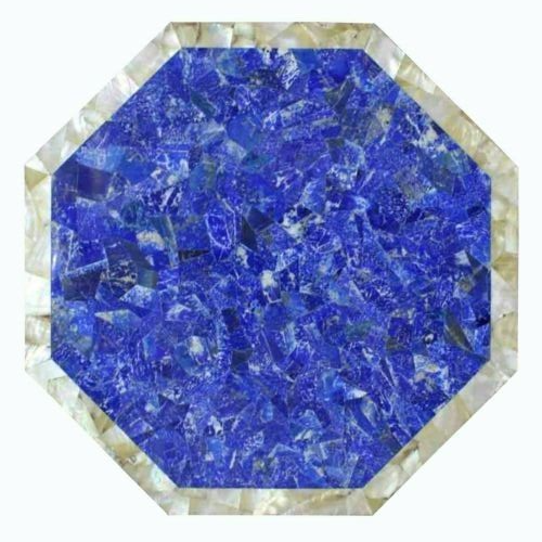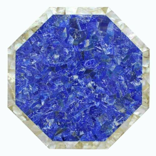 Welcome To Stone-Craft-Creations Shop Description Very unique Art by Indian Artist ,Coffee/Side Table top Used Material: Lapis Lazuli Gemstones Inlaid Size: 15"x15" Inches Color: As Photo Shape: Octagon Pattern: Handmade Room: Bedroom, Dining Room, Hallway, Home Office/Study, Kid’s Bedroom, Kitchen, Laundry/Utility Room, Living Room,Patio, Playroom Packaging: Wood & Foam Export Packing Shipping: Air Can be customize ,Please message your desired size Process of Making Marble Inlay 1. We are inlaying semiprecious stones in three different colors of marble White Marble,Black Marble & green marble. 2. The Marble used to inlay the semiprecious stone comes from city of Makrana, Rajasthan India. 3. First we cut the marble in different shape example Round,Octagonal,rectangle,oval & square shape. 4. After cutting the marble we paint the surface of marble with Hina(red Color) so we can sketch the geometry on the surface of Marble. 5. With the Help Of emery wheel we cut,polish & shape the semiprecious in different forms of flowers,buds,leafs & stems all the cutting of the semiprecious stones are manually cut by the artisans. 6. After cutting the semiprecious stones we assemble them to complete the motif & then the semiprecious stones are placed on the surface of marble so we can trace them on the surface of marble to make the exact size of the cavities once the stones are traced we remove the stones from the surface of marble & then manually we chisels the marble with the diamond chisels & tungsten carbide chisels once the cavities are completed we place the semiprecious stone in the cavities to check the depth of the stones. 7. When we are fully sure that the stone fits well in the cavities we use special kind glue to fix the semiprecious stones into the marble. 8. After completing the inlays into the marble we first rub the surface of marble with sandstone & then we polish the surface of marble with sandpaper which brings the natural shine on the surface of marble & to the semiprecious stone & we use wax polish to make the surface shiny. 9. Most interesting expect of this pietre dure( marble inlay with hard stone) all the designs are made by the artisans are purely an imagination of artist once made they cannot make another one exactly the same it will look similar but will not be the same. 10. This beautiful art is a dying art of Agra,India the artisans those make this beautiful art are the descendants of those families who built the Tajmahal in 17 century Tajmahal is a monument of love & you can easily see the artwork done with the same technique on the walls of the Tajmahal. 11. I Invite you to come to Agra,India & visit the beautiful Tajmahal & you will surely be impressed & we request you give us a chance to show you the true handmade art of Agra by our artisans. 12. When you are purchasing this beautiful handmade Marble inlay art you will always be happy because all the pcs made by our artisans with love,hope & happiness. 13. You will always be enjoying the beautiful handmade marble inlay artwork secondly you will be supporting the local artisans of Agra,India to keep this beautiful dying art Alive. 14. All the purchase benefits the artisans & the buyer as there is no middle men in selling & buying. Inspiration/Story Behind This Product 1. This beautiful inlay art is a dying art of Agra,India the artisans those make this beautiful art are the descendants of those families who built the Tajmahal in 17 century Tajmahal is a monument of love & and one of the seven wonders in the world you can easily see the artwork done with the same technique on the walls of the Tajmahal. Note 1.The marble inlay table is made in Agra, India. 2.The marble inlay table will be delivered by FedEx or DHL free of cost door to door. 3.If there is any local tax,custom duties or Vat will be paid by the buyer at the destination. 4.The parcel is dispatch with proper packing & fully insured covering all kind of risk. 5.This marble table illuminates if the light arrangement is made under the plate. 6.It is an art piece which will be a beauty & the conversation pieces at home. 7.If You Are Looking Something Customize, Let Us Know We Will Make For You As Per Your Design, Size & Shape. 8. This is only Table Top & Base/Leg is not included. If you want stand/leg also, please contact us For Wholesale or corporate Inquiry please contact us. Thank you very much for admiring beautiful handmade marble inlay art. Please recommend your friends & family members to visit our ebay store this art is Dying art of Agra & we need your participation to keep this dying art alive. Thanking you in anticipation for your great support. If you are in Agra please email us we love to show you the process of marble inlay work at our premises.