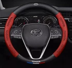 Product Description: Compatible Vehicles: 1960-2025 Toyota All Cars Fit For: Round Steering Wheel Size: Diameter 15" & 38cm Color: Fashion Red Material: Top Quality Leather + Carbon Fiber Package: 1pcs/Set 100% Brand New Feature: Attractive and Durable 1.Elegance and luxury design, fashion and practical combination. 2.Top quality soft touch leather and carbon fiber, add comfort, safety and protection for your journey. 3.Ergonomic design provides excellent grip, skidproof with tyre pattern and dotted design. 4.Comfortable hand feel, massage your palm to relieve drive fatigue, suitable for all season. So easy to install and use.