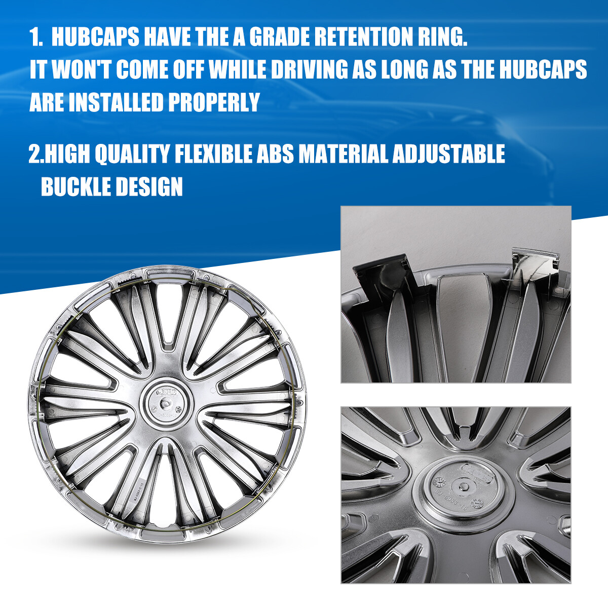 $ 33.2614" Silver Wheel Covers Set of 4 Full Rim Snap-On Hub Caps for R14 Tires & Steel Wheels