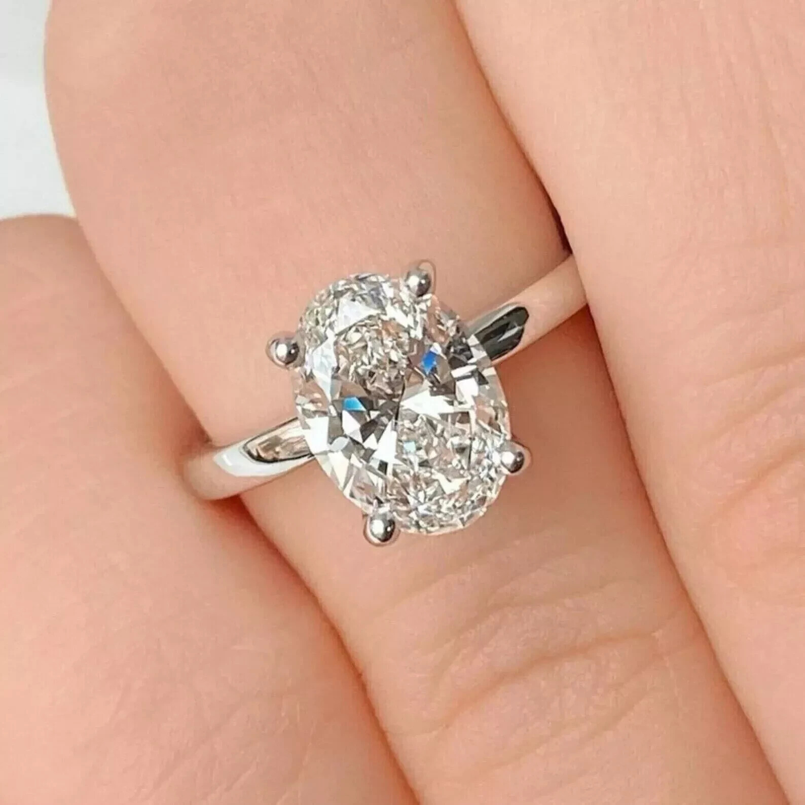 Elegant in its simplicity, this women's engagement ring features a striking 1.50CT oval-cut lab-created diamond set in a prong setting. The gleaming white Lab-Created diamond's clarity grade of VVS1 and excellent cut grade ensure a sparkling display of light and color. With a metal purity of 14k white gold plating over sterling silver, the ring offers both durability and a touch of luxury. Crafted for versatility, the ring is suitable for a range of occasions from anniversaries and birthdays to engagements and milestones. The ring is available in all sizes, and customers are encouraged to share their preferred size for a perfect fit. The piece is proudly made in the United States, ensuring quality craftsmanship and attention to detail.