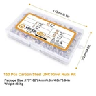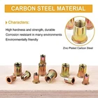 150pcs #8-32#10-24 1/4"-20 5/16"-18 3/8"-16 Carbon Steel UNC Rivet Nuts Assortment Kit, Yellow Zinc Plated Finish, Flat Head Threaded Insert Nut Assort Material Steel Fastener Type Rivet Exterior Finish Yellow Zinc, Zinc, Carbon Steel Color Yellow Drive System riveter Measurement System Inch Specifications: Material: Carbon Steel, Zinc Plated Quantity: 150pcs Head type: Flat Head Package: Durable Plastic Box Sizes: #8-32UNC, #10-24UNC, 1/4"-20UNC, 5/16"-18UNC, 3/8"-16UNC Warning: The product doesn’t suitable for children, please keep them away from kids. [Standard SAE Sizes] 150pcs rivet nuts with various sizes in a durable transparent box, it contains 5 sizes selected for you, includes: #8-32 x 45pcs, #10-24 x 45pcs, 1/4''-20 x 42pcs, 3/8''-16x 8pcs, 5/16''-18 x 10pcs. [Reliable Quality] Rivet nuts are made of carbon steel, strong rust and corrosion resistant for a long time use; Zinc plated surface help prevent surface damage and fade, anti-oxidation, healthy and lead-free, high strength, non-deforming, load-bearing threads [Great Kit for Home Use] the assorted insert nuts are widely used in automotive, furniture, decoration and other electrical and industrial products, suitable for a variety of occasions such as in air conditioning, fire fighting, gas or in medicine beverage food chemical industry and metal sheets factory. [Convenient and Thickened Box] These nuts kit is lightweight, very convenient to carry; Meanwhile, the transparent storage box had been thickened, more durable and sturdy than others, enough to accommodate all items safely. Package includes: 45Pcs............ #8-32UNC rivet nuts 45Pcs.......... #10-24UNC rivet nuts 42Pcs.............1/4''-20UNC rivet nuts 8Pcs.............. 3/8''-16UNC rivet nuts 10Pcs...........5/16''-18UNC rivet nuts