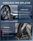 Fast Inflation & Time Saving - This car tire inflator is equipped with a powerful motor that can quickly inflate a 195/55 R15 car tire from 29 PSI to 36 PSI in just 2 minutes. It's perfect for electric bikes, bicycles, motorcycles, cars, balls, and more. You can use it regularly to maintain your tires, saving you the hassle of driving to the nearest gas station and paying for air Accurate & Automatic - The portable air pump features a built-in pressure gauge and an LCD screen, enabling you to accurately monitor tire pressure in real time. Real-time reporting of precise data lets you check tire pressure at a glance! Once the preset pressure is reached,this inflator will automatically stop. Say goodbye to over-inflation Compact & Portable - The main feature of our smart tire inflator is its compact, cordless design, making it easy to take with you wherever you go. It fits perfectly in your backpack, can be mounted on your bike, or stored in your car, making it an essential tool for cyclists, campers, and adventurers User-Friendly -This portable air pump for car tires offers 4 pressure unit options (PSI, KPA, BAR, and KG/CM²) and 4 preset inflation modes (bicycle, motorcycle, car, and ball), giving you the flexibility to inflate anything. Besides, the manual mode makes it easy to adjust the pressure (3-150psi) to match any inflation object. It is an ideal choice for inflating cars, motorcycles, bicycle tires Multifunctional for Emergencies - This portable tire inflator for car features 3 lighting modes (LED, SOS, strobe), allowing you to inflate tires in darkness, change tires at night, or signal for help in emergencies.The top also includes a 5V/2A USB output/input port, serving as a backup power source for your phone. Whether you're on a road trip or camping, this portable tire inflator can double as a compact power bank and flashlight in dark conditions