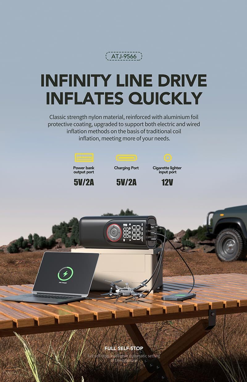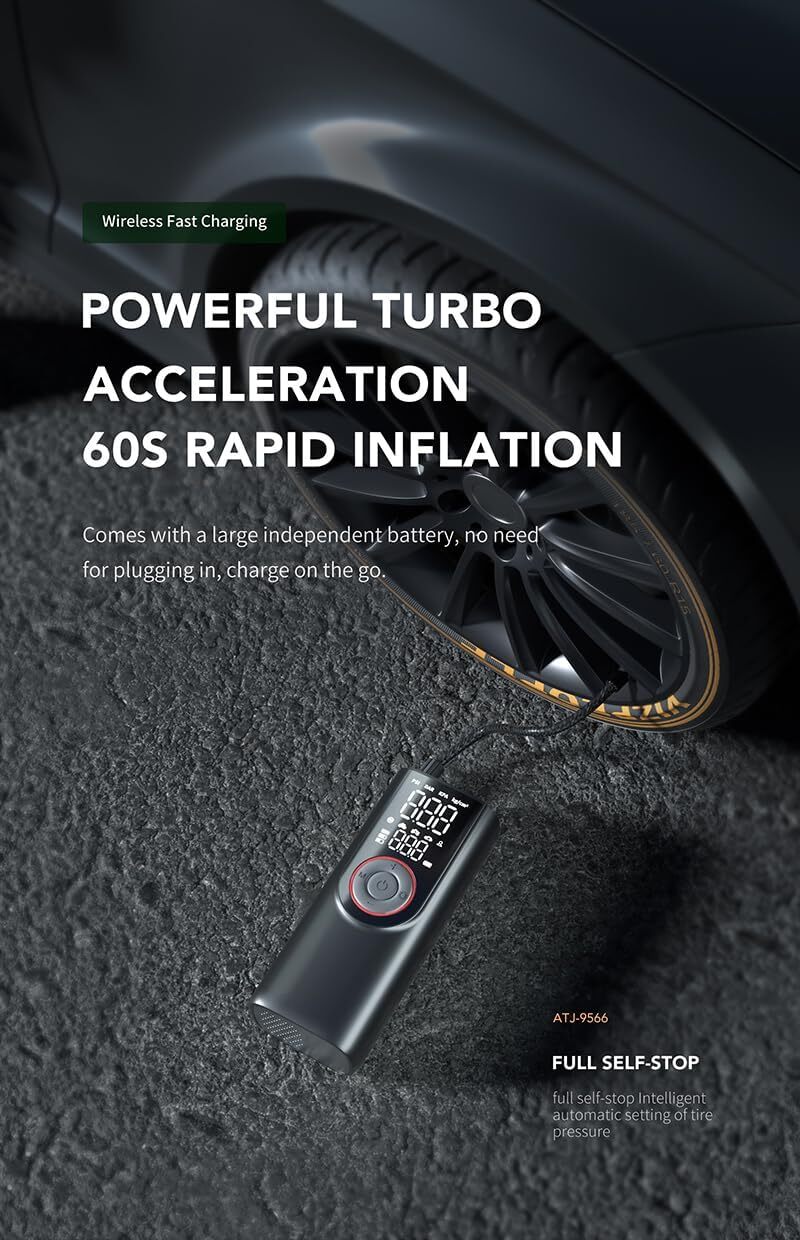 This portable tire inflator is a lifesaver! The 150PSI power inflates car, bike, and motorcycle tires in minutes—no more gas station stops. The bright LCD screen shows real-time pressure, and the 10,000mAh battery lasts forever. Super compact, super fast, and so easy to use—just press a button. Total game changer for road trips!
