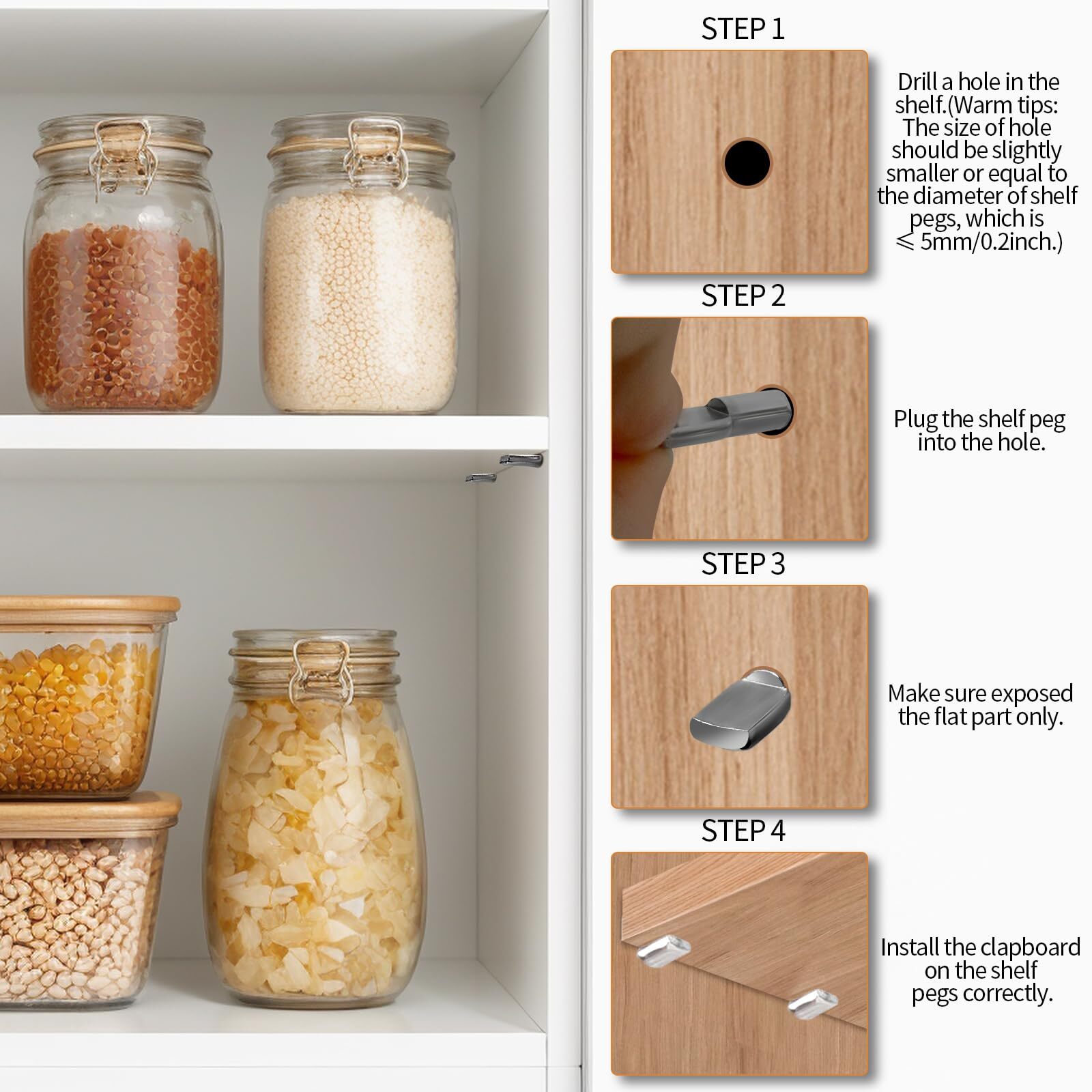 150 PCS Shelf Pegs, 5mm Shelf Pins, Cabinet Shelf Pegs, Pegs For Cabinet Shelves, Nickel Plated Shelf Support Pegs, Spoon Shape Shelf Pegs For Shelves, Cabinet Pegs For Shelves, Shelf Support Welcome to MY STORE No Extra Charge Flat Rate Shipping 24/7 Support Always Able to Help eBay Payment We Accept eBay Payments Method Fast Delivery We Process & Deliver on Time 150 PCS Shelf Pegs, 5mm Shelf Pins, Cabinet Shelf Pegs, Pegs For Cabinet Shelves, Nickel Plated Shelf Support Pegs, Spoon Shape Shelf Pegs For Shelves, Cabinet Pegs For Shelves, Shelf Support Product Description Product Features Cabinet Shelf Pegs--What you will get: 150 pieces 5mm shelf pins in a white paper box, easy to storage for next using.|The sufficient amount can fully cover your shelving needs. 5mm Shelf Pins--Designed with standardized diameter in 5mm/0.2inch, length of pin is ca. 9mm/0.35inch, the length of spoon-shaped part is ca. 9mm/0.35inch, suitable for most cabinets or shelves with 5mm holes.|Warning: Please read carefully the size detail and verify the hole size of your cabinets or shelves before purchase. Strong Shelf Support Pegs--Made of high quality metal with smooth and beautiful polished nickel plated surface, will easily rust and oxidized. Light and small size, the unobtrusive design allows the shelf pegs to come completely up to the side of the cabinets or shelves. Widely Usage In Daily--With the diameter in 5mm/0.2inch, suit for cabinet, shelf, wardrobe in Φ5mm. Used also general as bookshelf pegs, bookshelf pegs for shelves, kitchen cabinet shelf pegs and so on. Practical shelf pegs for shelves. Easy to Use--1. Drill a hole in the shelf. (Warm tips: The size of hole should be slightly smaller or equal to the diameter of shelf pegs, which is ≤ 5mm/0.2inch.)|2. Plug the shelf peg into the hole.|3. Make sure exposed the flat part only.|4. Install the clapboard on the shelf pegs correctly. Shipping We do not ship to a different address. We will ship to the address you provide on eBay only. Please check your address before purchase. Fast shipping is very important for us. It should take 3-5 business days for the product to reach your destination. If it takes any longer than that, please do not hesitate to contact us to resolve the issues. Returns All our products come with a 30-Day Return Policy. If you would like to return your item and you are within 30 days of the purchase If you are not 100% satisfied, please let us know the Detailed Problem,We will give you a 100% satisfactory solution. If you received an incorrect, damaged, defective, or item not as described, contact us for a partial/full refund or replacement on our cost. Free Shipping and Free Return 30-Days Money Back Guarantee. Payment We accept eBay payments such as PayPal, Google Pay, Visa, MasterCard, and American Express. Payment is processed through eBay's secure system. Please ensure that your shipping address is correct before making the payment, as we are unable to change it after the order is processed. For any payment-related issues, please contact eBay customer support. Feedback Your feedback is very important to us. After you receive your package and are satisfied with our service, please leave us positive feedback. If you have any problem with your order or any questions, please contact us before leaving any type of feedback. Contact Us If you have any questions related to our products, please don't hesitate to contact us through eBay message.