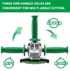 Powerful High power output: The general power is between 1000W-1800W, which can produce strong torque and can easily handle the cutting, grinding and polishing of metal, stone, wood and other materials. For example, cutting thick steel plates, polishing marble, etc. can be efficient Finish. High-speed rotation: The no-load speed is usually 6000-12000 rpm. The high-speed rotating grinding wheel or cutting disc can contact the workpiece more times per unit time, greatly improving the efficiency of cutting and grinding. Multifunctional application Cutting function: With the appropriate cutting blade, it can cut metal pipes, profiles, plates, stones, ceramic tiles, etc. It can meet the material cutting needs in different scenarios, such as cutting steel bars during construction, cutting ceramic tiles during decoration, etc. Grinding function: With the grinding wheel, it can remove rust, deburr, and smoothen the metal surface. It can also polish the wood surface to make it smooth and delicate, preparing for subsequent painting, finishing and other processes. Polishing function: After installing the polishing wheel, it can polish metal, stone and other materials to make the surface of the material appear bright and improve the appearance quality of the product. Safe design Protective cover: It can effectively prevent the grinding wheel disc from breaking or the cutting disc from flying out during the work, causing harm to the human body. The angle can be adjusted according to the work requirements to better block flying debris. Auxiliary handle: Usually installed on the side of the angle grinder, it facilitates the operator to operate in different postures, increases the stability and flexibility of the operation, allows the operator to better control the movement direction and strength of the angle grinder, and reduces the risk of reaction. Danger caused by force. Other protection devices: Some angle grinders are also equipped with functions such as rebound stop, restart protection, overload protection, and leakage protection to ensure user safety in an all-round way. Ergonomic design Comfortable grip: The ergonomic handle design fits the natural curve of the hand, allowing users to remain comfortable during long-term operation and reduce hand fatigue. At the same time, the handle material usually has anti-slip and wear-resistant properties, ensuring more stability and reliability during operation. Reasonable weight distribution: On the premise of ensuring the performance of the angle grinder, the optimized design makes the weight distribution of the angle grinder more reasonable, reducing the burden on the wrist and arm during long-term use, and making it easier to operate. Good durability High-quality motor: Using a high-performance motor with good heat resistance and insulation properties, it can maintain stable operation under long-term high-load working conditions, reduce failures caused by motor overheating and other problems, and extend the service life. Solid material: The casing is generally made of high-strength engineering plastics or metal materials. It has good mechanical strength and impact resistance, can withstand certain external impacts and vibrations, and adapts to different working environments. Wide adaptability Voltage adaptability: 110V voltage design, suitable for some regions or occasions that have specific voltage requirements, such as normal use in some foreign regions or specific low-voltage power supply environments. Accessory versatility: 150mm is a more common angle grinder specification. There are a large number of matching grinding wheel discs, cutting discs, polishing wheels and other accessories on the market to choose from. Users can easily replace accessories according to different work needs, and The versatility of accessories also reduces the cost of use.