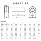 There are high quality cap head hex socket bolt Material: 304 (A2-70) stainless steel / 12.9 class steel Size: d(thread diameter) x L(thread length) Kindly remind: for 12.9 class steel (black) bolt most of the bolt is full thread,a small part of lengthened bolt are half thread in M3,when the thread longger than 25mm, it is part thread in M4,when the thread longger than 25mm, it is part thread in M5,when the thread longger than 25mm, it is part thread in M6,when the thread longger than 30mm, it is part thread in M8,when the thread longger than 35mm, it is part thread Metric thread diameter: M3 (3mm)/M4 (4mm)/M5 (5mm)/M6 (6mm)/M8 (8mm) Metric thread pitch: 0.5mm (M3) / 0.7mm(M4)/0.8mm(M5)/1mm(M6)/1.25mm(M8) Thread length:4mm-100mm On Dec 14, 2024 at 22:58:36 PST, seller added the following information: