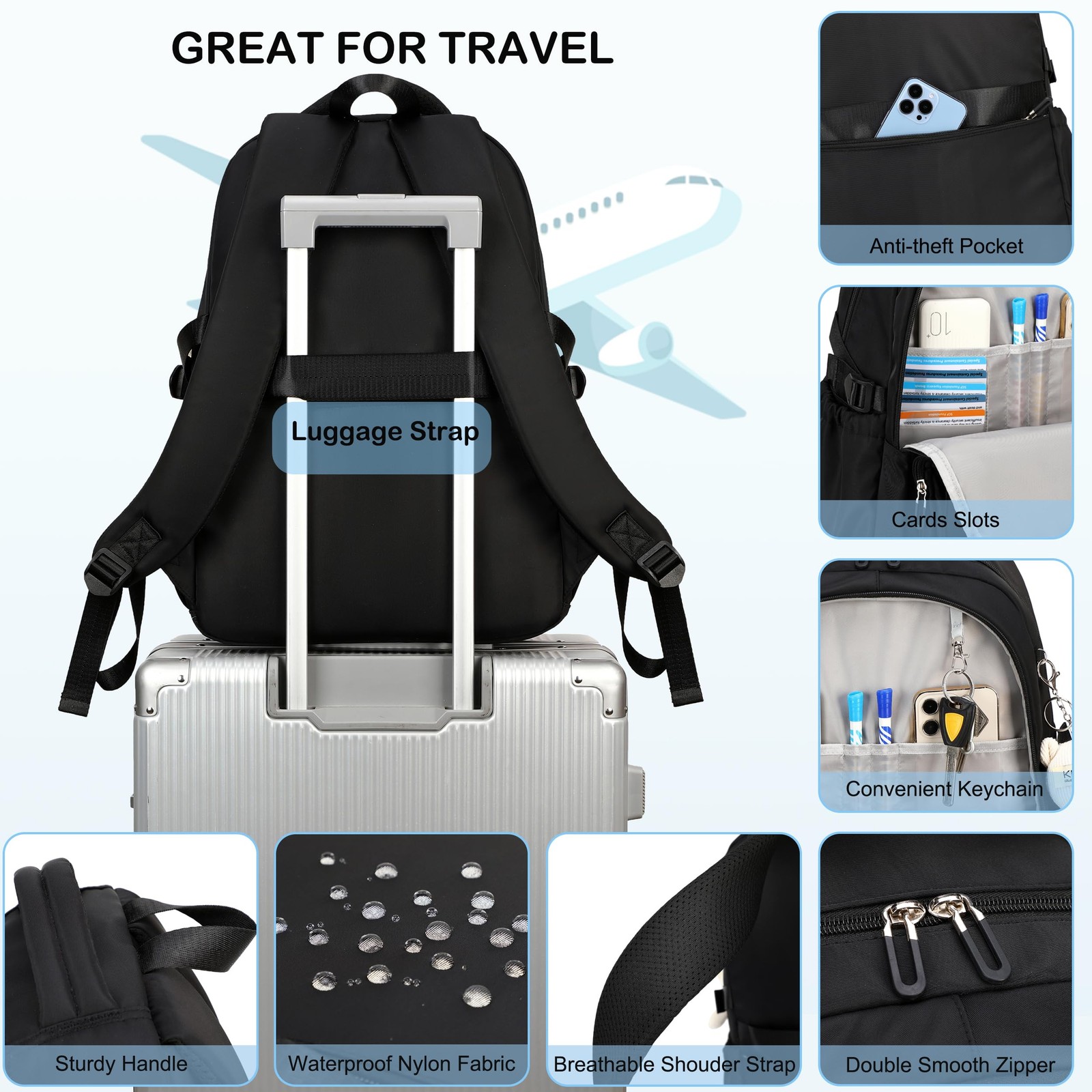 Recommend age:3-14 ▶Large Size & Giveaway: The size of stylish student backpack for school is 13.8"x7.5"x17.8"(L*W*H), Weight:1.65 LB. The laptop bag compartment come with laptop protective tape and have multi compartments with a separate ipad compartment(fit up to 11.3 inch ipad) and a separate computer compartment(fit up to 17 inch lap top). This big schoolbag for teenager also along with backpack ornaments(a white plush soft bear doll key pendant)as accessories makes the bags more fashionable and unique. ▶Durable Material & Smooth Zipper: The backpack for college compus made of the water resistant and friendly high density nylon not only have a premium feel but also sturdy and durable. The outdoor daily knapsacks for teenage men women with smooth metal zippers ensures daily long-lasting use. ▶Multi-pockets & Spacious Backpack: The light weight waterproof backpack for girls boys womens men has 6 separate different size zipper pockets and two side pockets meet your daily storage. The feature of the multi-pockets design for the women mens university bookbag provide its ability to have powerful storage space.Two main laptop pockets includes great organized multi compartment and hidden inner zipper pockets. The front three pockets can hold charge device and other small items. ▶Anti theft & Pracical Backpack: The fashion laptop travel bagpack designed for airplane traveling approved, easily accessible hidden pockets for valuables on the back keep your valuables safe and handy. And the luggage strap is very practical so that you can attach the backpacking to the trolley of your luggage to make your trip more comfortable. ▶Versatile Usages: The lightweight unisex backpack is incredibly versatile.It is also suitable for all occasions.Perfect as elementary middle high school backpack,teen back pack,college backpacks,book bags for teens, casual back bag,antitheft travel backpack,work backpack for nurse teacher,backpack purse for women men.Practical gifts for children, big kids,college students,teachers,partner,friends,Mother’s day,Thanksgiving day,Christmas New Year Presents.