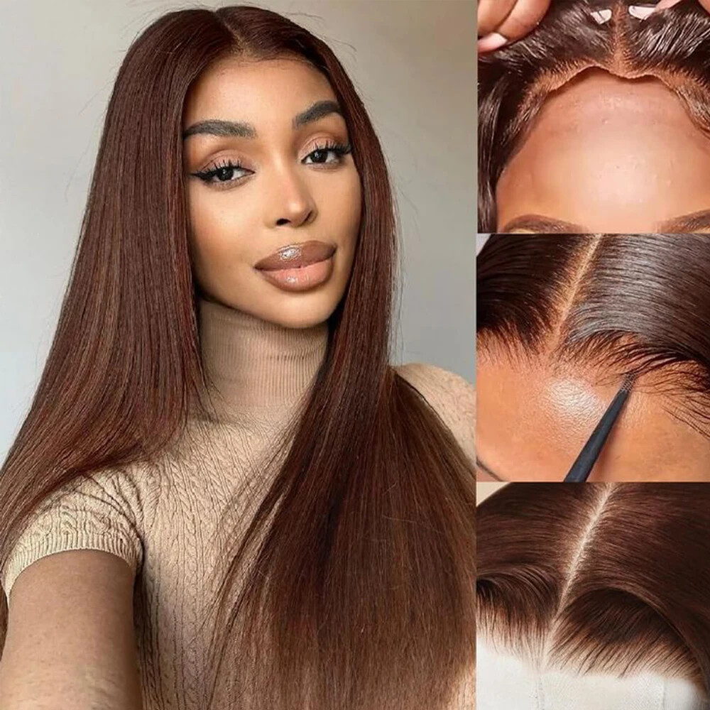 $ 26.84Reddish Brown HD Pre Plucked Straight Lace Front Wig with 4x4 Closure