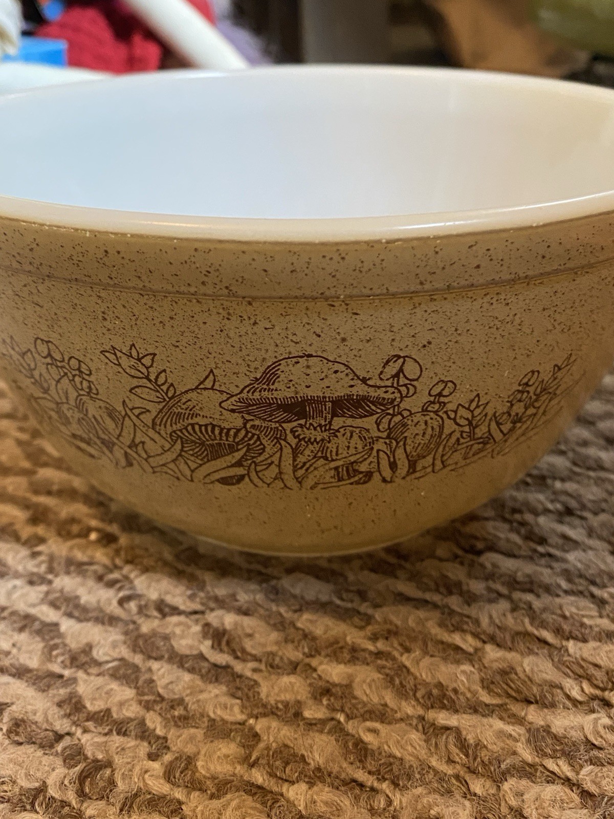 This bowl is absolutely charming! The vintage mushroom design brings such cozy vibes to my kitchen while being super practical for mixing batters and serving salads. It's sturdy, cleans easily, and always gets compliments from guests. Love having this retro piece in my collection!