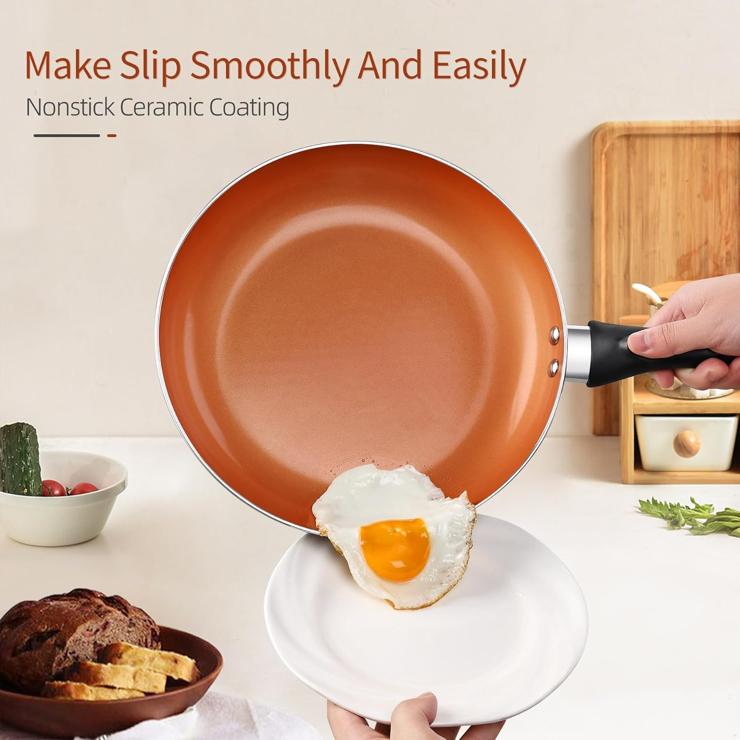 Absolutely love this ceramic cookware set! The nonstick coating works like a dream—food slides right off without any oil. It heats evenly and cleans up in seconds, making cooking so much easier. The set has everything I need, from frying pans to saucepots, and the sturdy construction feels high-quality. Perfect for gas and electric stoves, though it won’t work on induction. Healthier cooking with no toxic chemicals, and the sleek design looks great in my kitchen. Highly recommend for anyone wanting hassle-free, everyday cooking!