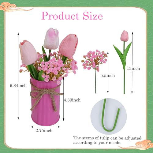 30 Days Return Policy Fast Delivery Trusted seller 15PCS Colorful Artificial Tulip with 5 Metal Pot Fake Tulips Potted Flowers in Vase for Table Decor Home Office Wedding Party Bouquet Arrangement Centerpieces Product Description Tulips Artificial Flowers in Vase: Includes 15 pcs multicolor artificial tulips flowers, 15 Pcs babys breath silk fake flowers, and 5 pcs galvanized metal pot vintage Size: Full height of the tulip: 13''; Each flower head diameter:1.5''; the babys breath is 6.3'', the galvanized metal pots is 4.33''in height, the width is 2.75''. The mini tulip artificial potted flowers look more real and suitable as a centerpiece Premium Materials: Artificial tulips and baby's breath flowers are made of soft Polyurethane (PU), stem is made of Plastic, with touch-like real feelings and flexibility. Metal pots are made of rustic galvanized tin, resistant to breakage and rust Spring Centerpieces for Tables: This fake flowers in pots can bring your space green and fresh, decorating your kitchen, living room, mason jar centerpiece for table, Easter table decor, wedding receptions, farmhouse, bring spring to your home Wide Use: The artificial tulips can compliment any space, perfect for Easter brunch centerpiece, spring floral arrangement, vase filler, spring table decor, wedding bouquets, office, party, hotel, cafes, celebration Shipping Returns Payment Shipping Shipping is FREE to all addresses other than APO/PO boxes in the lower 48 states. All our stock ships from US-based warehouses. Shipped via USPS or UPS (depending on location and package weight) Unless stated otherwise, all orders will ship within 24-72 hours of your payment being processed. Check our feedback to see the great reviews of FAST shipping we offer. Returns As our valued customer, we will do our best to make sure the product you receive arrives to you on time and as expected. If you are not satisfied with your purchase, please contact us within 30 days of receiving your order to process a return. Payment We currently accept payment via eBay managed payments only. Once payment is cleared, we will dispatch your shipment within 1-3 business days. Please refer to the "Shipping" tab for more information regarding shipping speed to your destination.