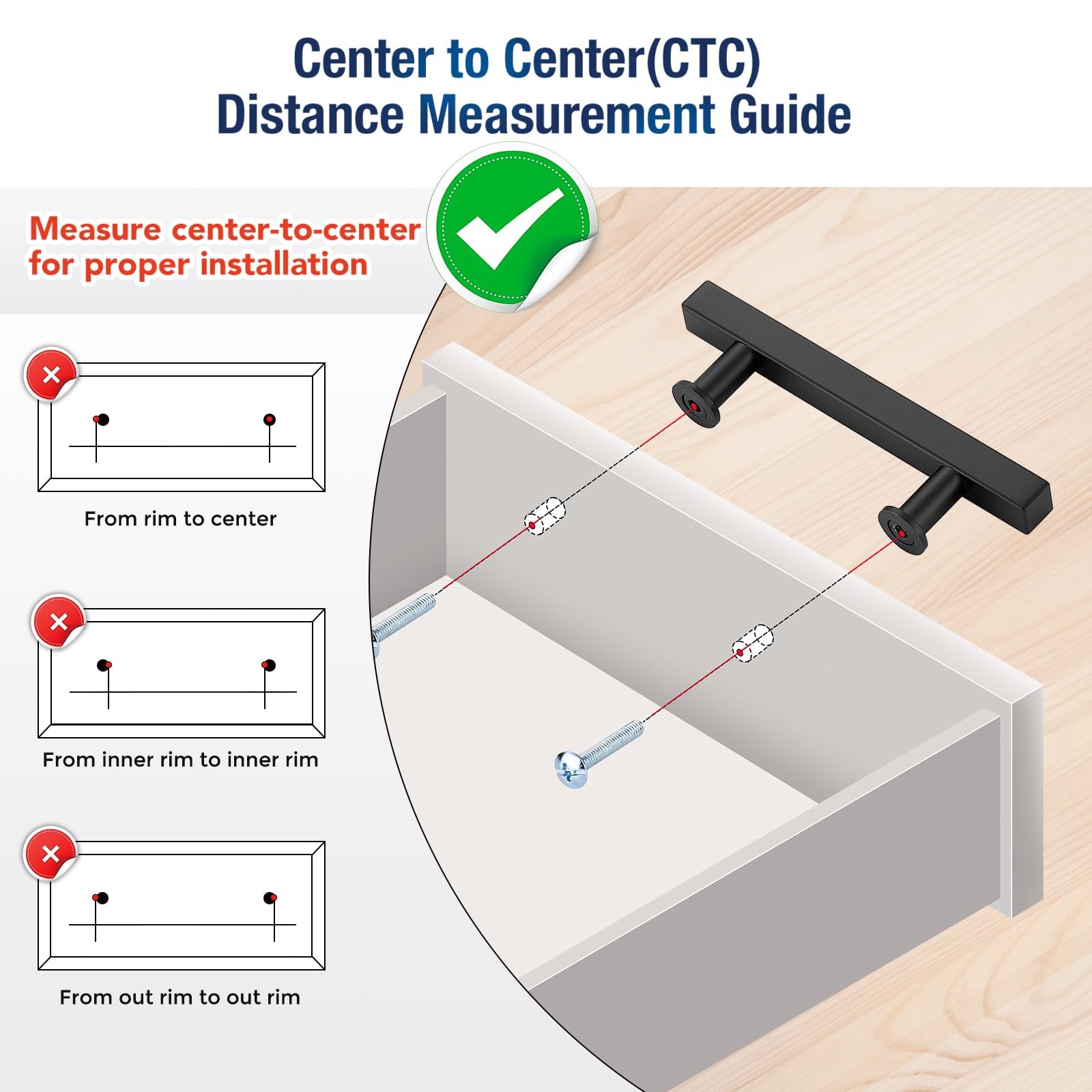 drawer pulls feature a simple yet classic brushed nickel finish, making it the perfect choice to bring your design together. The dresser handles' functionality shines through as it effortlessly enhances the convenience of opening drawers and doors, making it an ideal choice for any cabinet or storage space.Choose handles for cabinets and drawers to transform your cabinets into stylish and functional focal points that reflect your personal taste and enhance the overall beauty of your home.We understand the importance of a hassle-free installation process. Our drawer handles come with all the mounting hardware, making it effortless to upgrade your cabinets. DIY enthusiasts and professionals alike will appreciate the convenience. 365-day trial period: We offer 365 days risk-free after-sales service so that you can order with confidence. brings you a truly joyful decoration experience. Measurement: Hole Center: 3 inch(76mm), Total Length:5 inch(127mm), Width: 1/2 inch(12mm), Height:1-2/5 inch(35mm) DIY-friendly: There are 15 pack handles in the box, and each handle wraps with a plastic bag to avoid scratch during the trasportation .We also equip with 2 size M8-32 machine screw metric size(1"*2 screws and 1.75"*2 screws ) for each handle .The 1.75" screws can be cutted to the size you need and install easily . Long-lasting Material: Our matte black cabinet handles are made of high quality stainless steel . T-Style with round feet can cover widder base mark left by previous handles .The bottom of the handle covers a large area, which can make the handle more secure and stable.It has the design of rust-proof, anti-fingerprint, anti-fading and is comfortable to the touch. Timeless & Functional:The exquisite black and square design makes the handles look beautiful and is ideal for a variety of decoration styles, such as kitchen cabinets, bathroom cabinets, wardrobes and dresser drawers , adding a touch of modernity and elegance to the overall design.